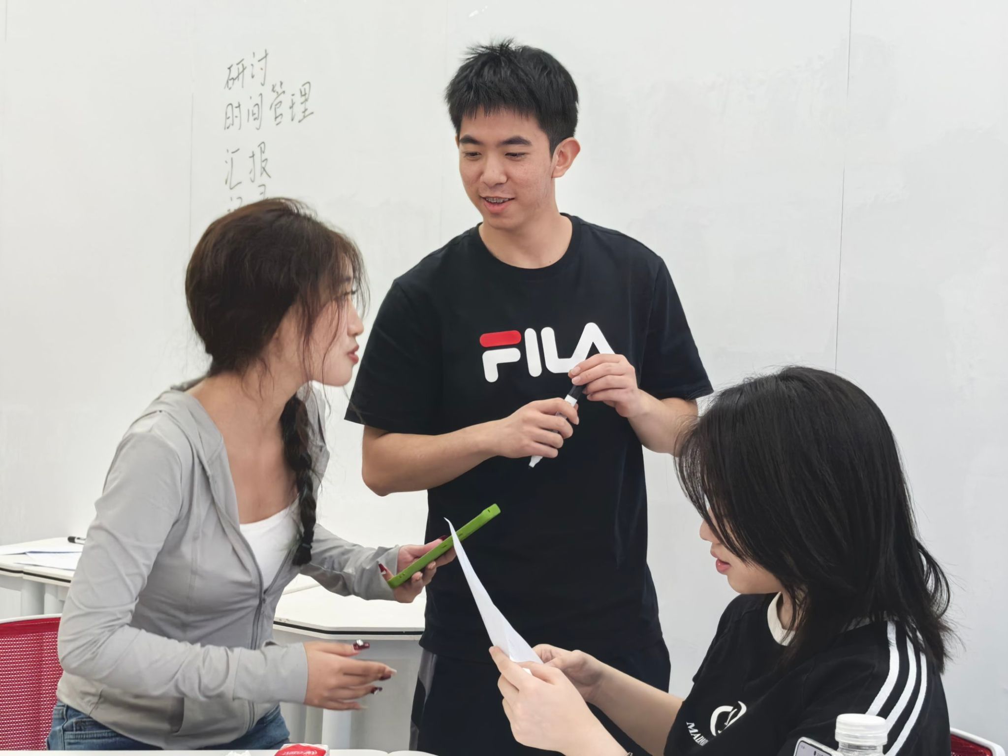 为了让书院学子们能够深入课堂,亲身体验并学习相关内容,玉棠书院与双体精英产业商学院携手合作,共同举办了无领导小组讨论培训活动。双体老师凭借其深厚的知识基础和丰富的教学经验,对无领导小组讨论进行了生动而详尽的阐释,表示在无领导小组讨论中,参与者通常会自主形成三类角色,包括组织者、时间控制者及记录者、参与者等。这种讨论方式既可以作为领导人才选拔的测评工具,也可以作为领导人才培训的诊断工具。在接下来的分组讨论中,部分同学表现突出,迅速把握讨论核心,运用技巧引导话题,展现出卓越的领导力和团队精神,发言积极且观点新颖。也有个别同学因初次接触稍显拘谨,但眼神中充满求知欲,未来可期。讨论结束后,专业导师进行了一对一点评,为每位参与者提供了针对性的反馈与建议,鼓励所有参与者将所学应用到日常学习与生活中,不断磨练自我,追求卓越。