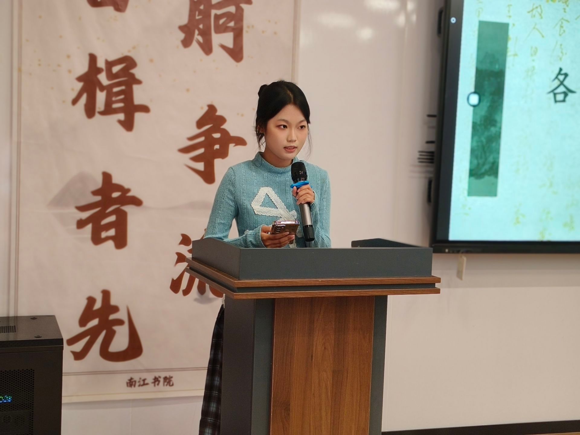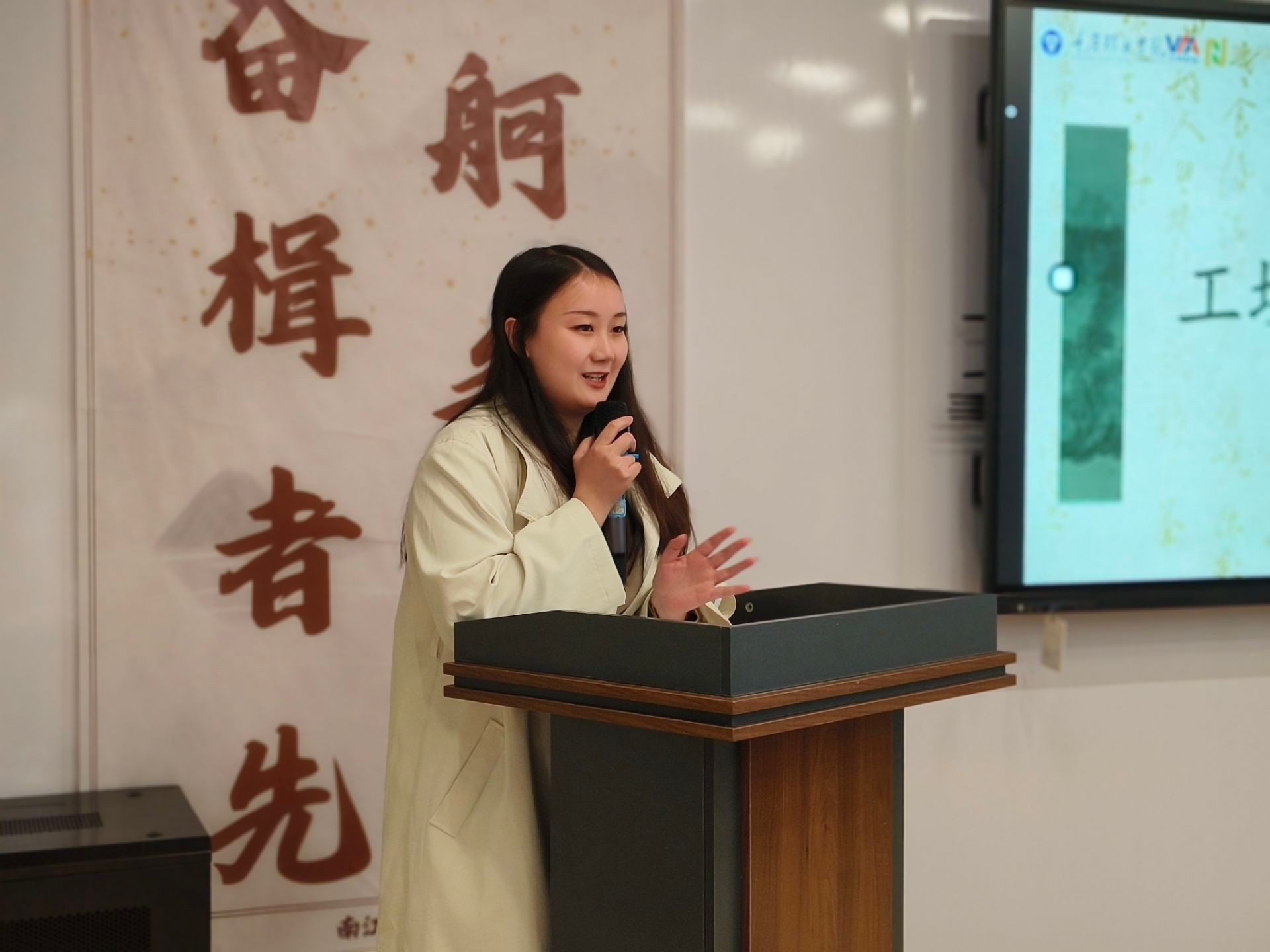 仪式之初,主持人对出席人员的到来表示热烈欢迎。首先,由南江书院综合办公室主任罗美琪老师从南江书院的基本情况、双核文化出发,对整体规划和发展方向作了分享。南江书院的领导力是明辨力,家文化是求真务实;书院作为一个空间主体,除了管理与使用,还承载着为学子们提供大量资源与平台的功能。书院将大力支持项目工坊的后续发展与成果孵化,致力于携手与各单位以工坊平台为契机,为每一位学生创造更加有利于个人发展的环境,共同搭建、引入更多更好的资源平台。