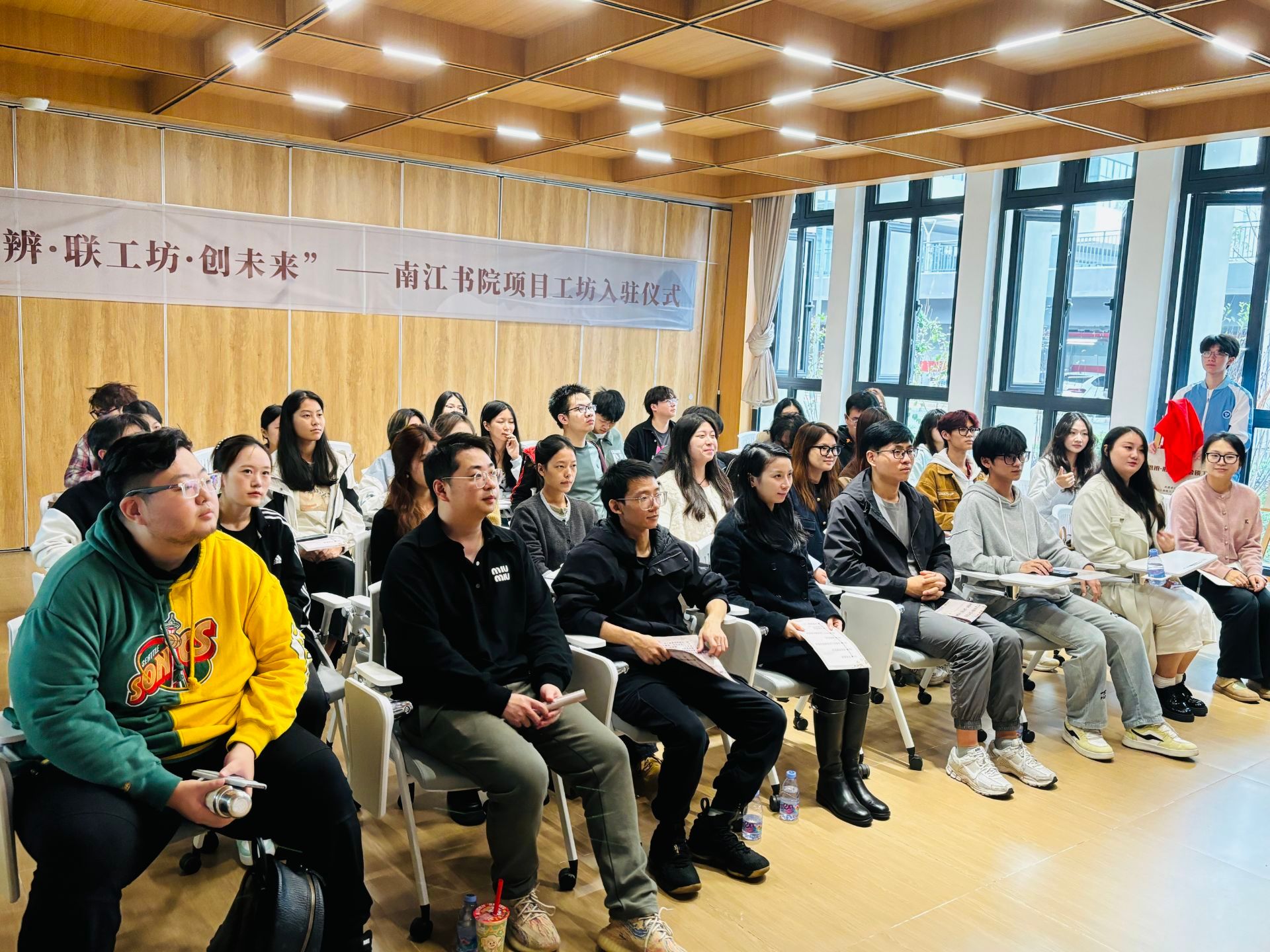 为进一步推动“四位一体双院制+特色课程”联动融合,坚持“以学生充分发展为中心”,从学生成长需要的角度出发,充分联动校内外资源,满足学生个性化的发展需求,为学生打造跨学科、重实践、强创新学习平台。基于这一目标,南江书院于11月15日下午14:30在南江书院博学·悦享互动空间举办了“融思辨·联工坊·创未来” ——南江书院项目工坊入驻仪式。莅临本次仪式的嘉宾有项目工坊全体老师、学生代表及书院导师。
