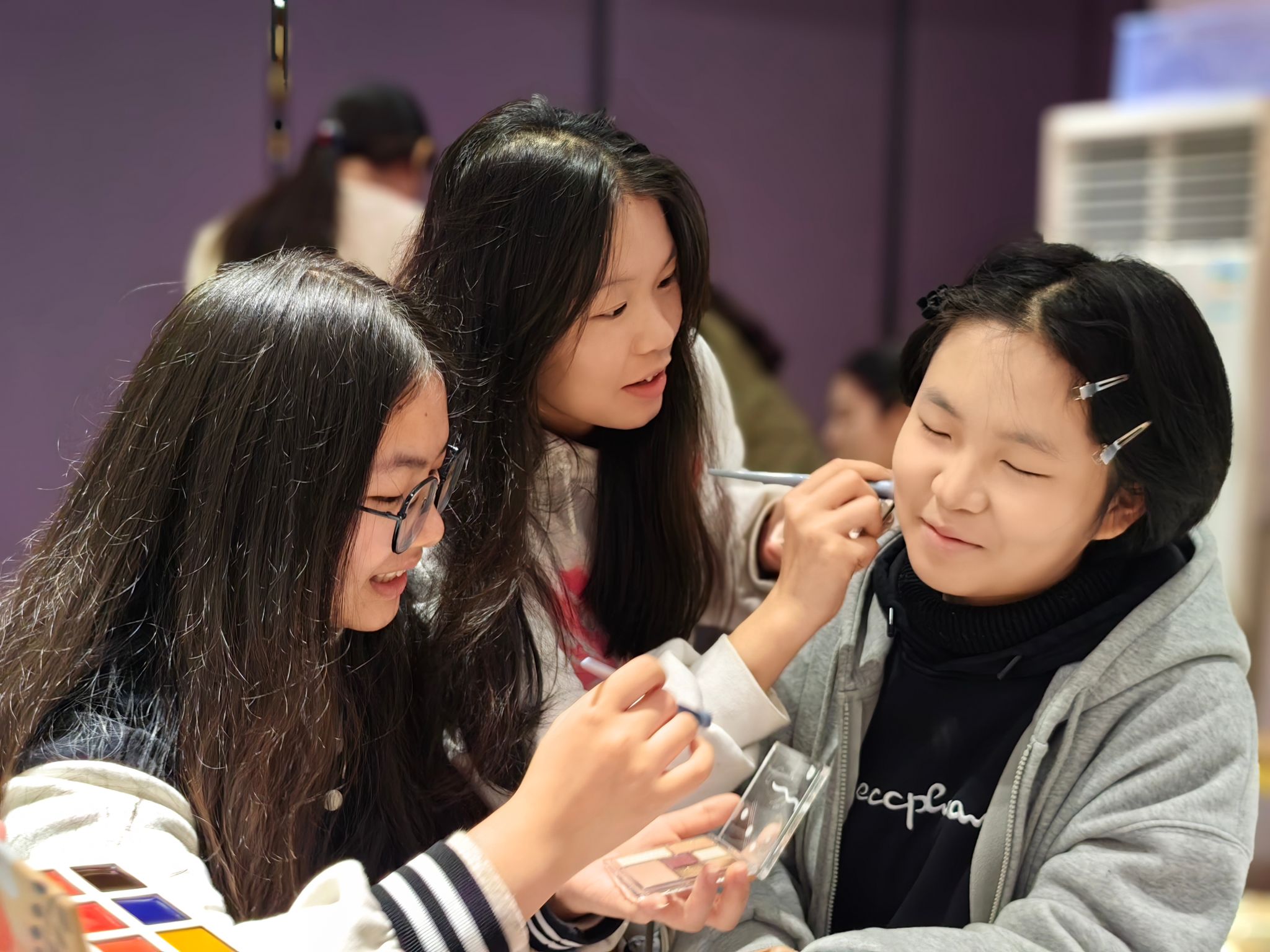 画卷徐徐展开,五官上做文章,杯盏不停,笙歌不息,便是大唐面容。本期“国风美人请就位第2期 ‘妆’点盛唐”活动圆满结束。活动中,同学们细致入微地描摹出唐代妆容的瑰丽与大气,在动手实践中提升了审美鉴赏能力,坚定了对中华优秀传统文化的自信,播撒了文化的种子,收获传承的硕果。