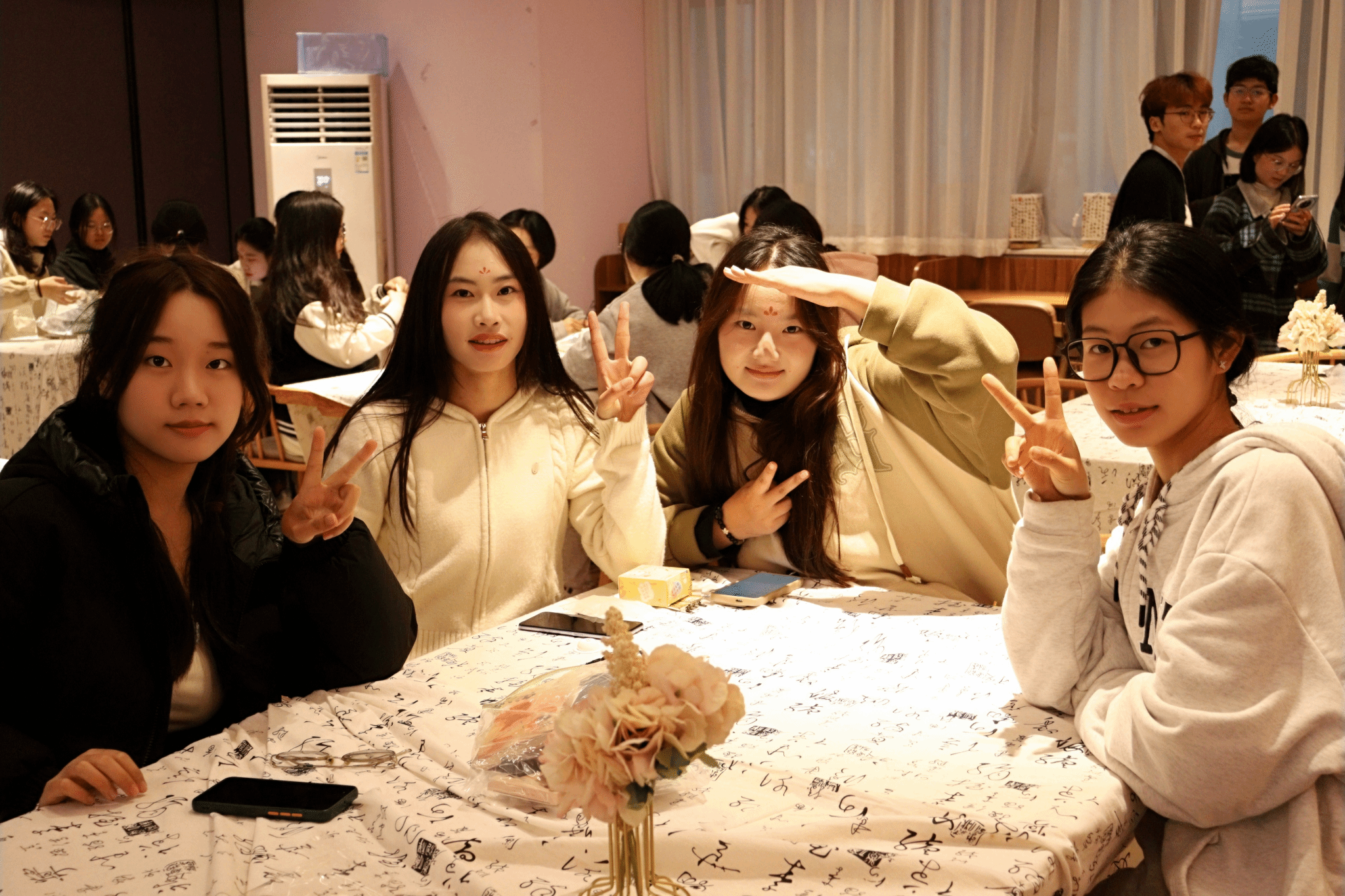 唐朝是中国古代最繁荣昌盛的时期,有着“大唐盛世”的称号,而且唐朝对于外来文化的包容性也极强,因此形成了多种文化融于一体的局面,以其独特的魅力成为了中国化妆史上的重要篇章。活动最后,同学们妆容精致,合影留念。花钿点额,红唇轻启,一颦一笑尽显东方韵味。