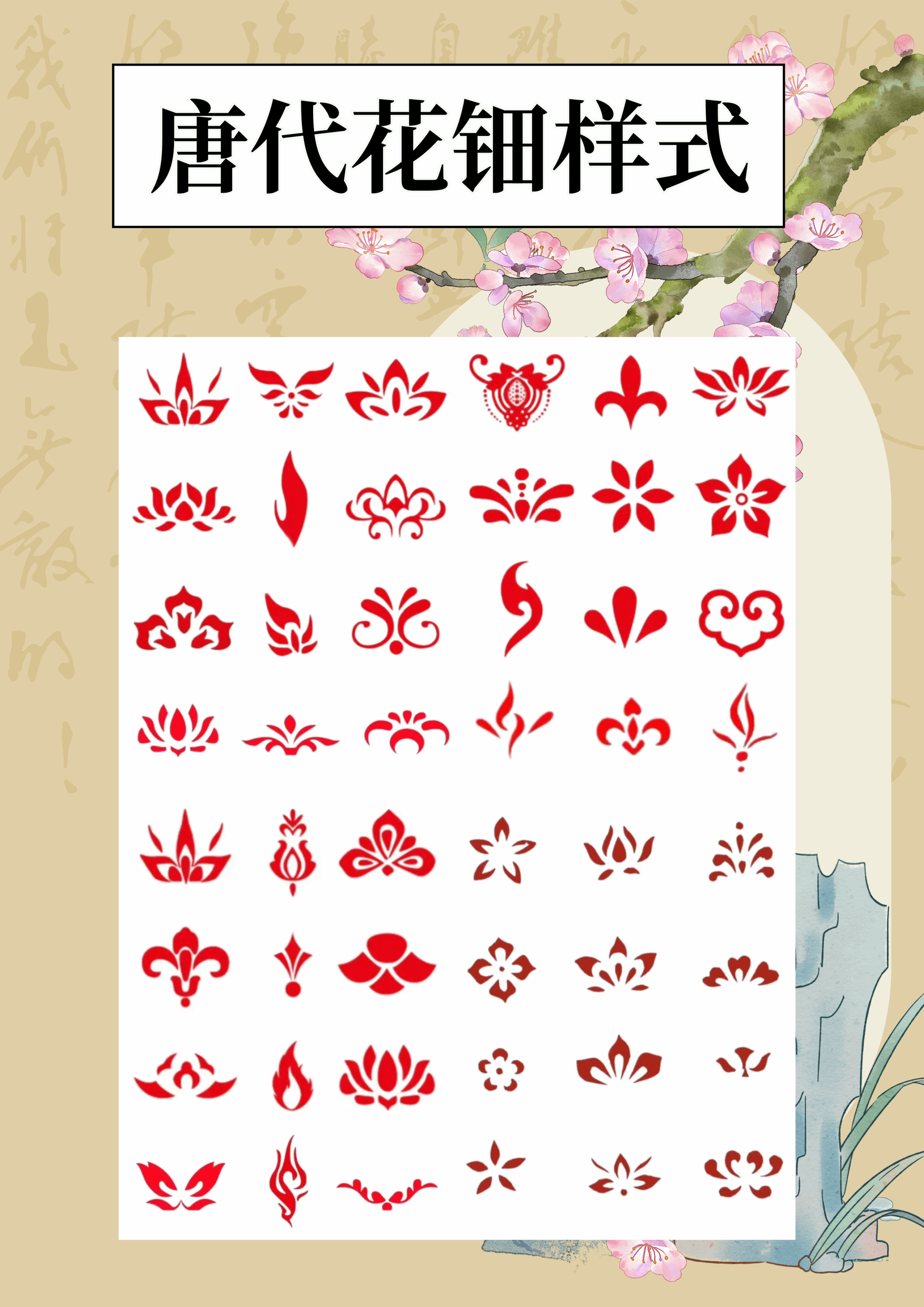 唐朝的开放风气和繁荣经济,使得人们更加注重外在美,化妆技巧也得到了极大的发展。唐代妆容最大的特色是面部的白面妆,以营造出大气的妆面效果。眉毛的画法更是多种多样,有柳叶眉、蛾眉等,各具风情。唇妆则以小巧圆润为主,色彩鲜艳,如樱桃般娇艳欲滴。此外,花钿、面靥、斜红等装饰更是为唐代妆容增添了独特的韵味。