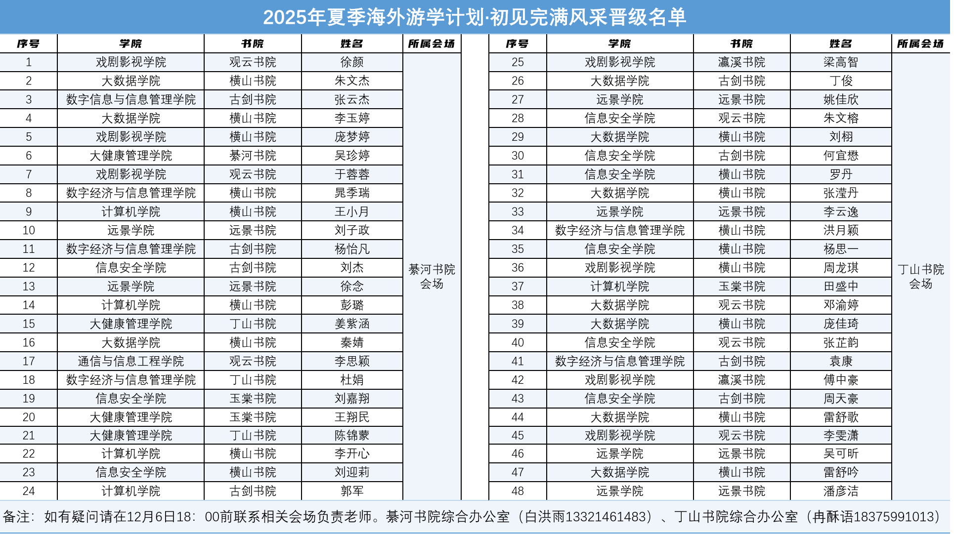 “2025年夏季海外游学计划·初见完满风采”入围名单如下: