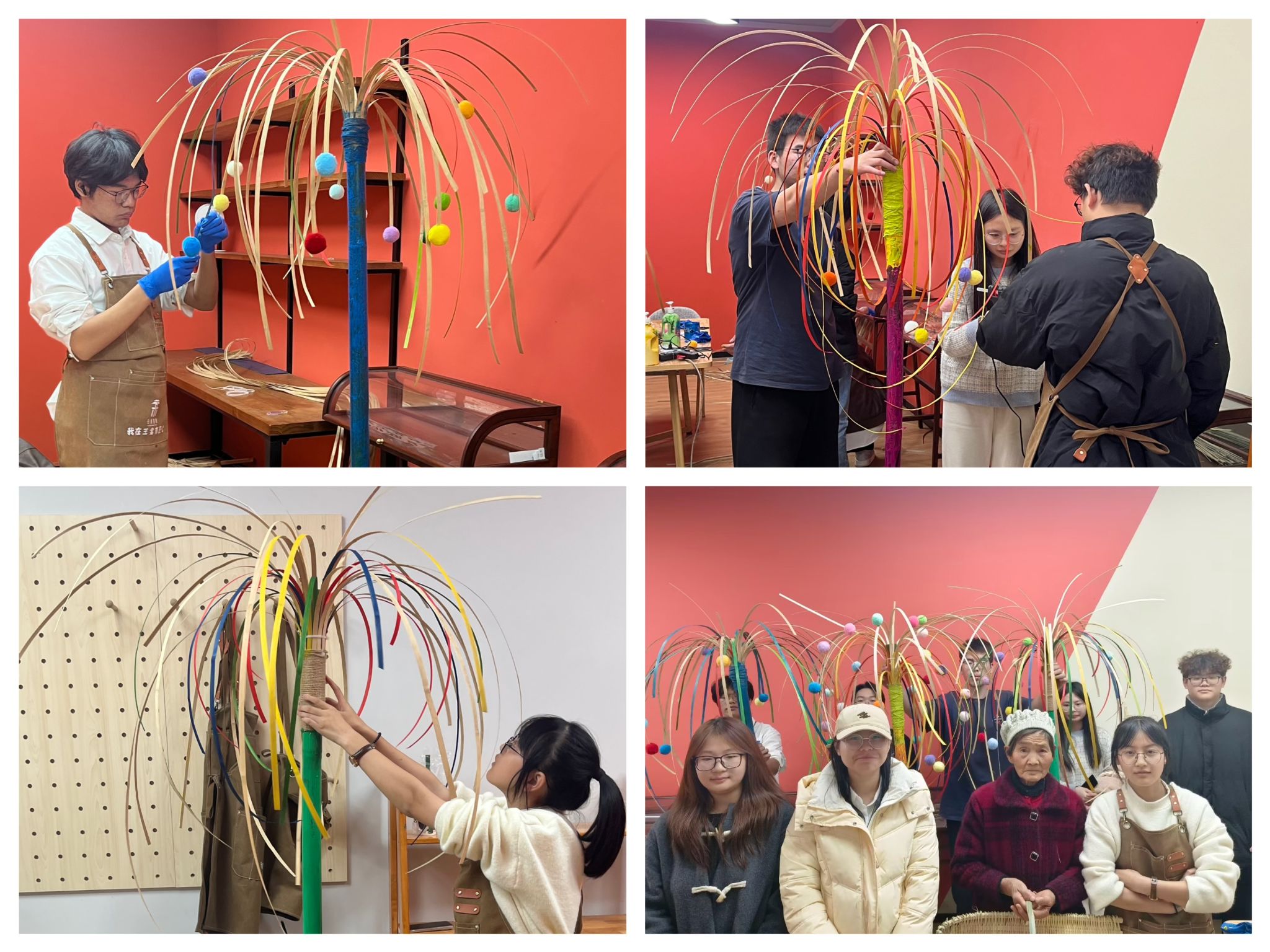 本学期工坊以竹篾编织为主题,开展了4期“我在玉棠育匠心”系列活动,邀你体验传统竹艺之美。在资深工匠的指导下,从选篾开始,学习处理技巧,掌握编织基础。你可动手编织花灯,将竹条巧妙编织、拼接,缝布成型,感受竹篾在指尖的灵动;或尝试竹筒烟花编织,让竹条在筒上绽放创意。在此,沉浸匠心世界,体会专注与宁静,于编织中收获成就与喜悦。
