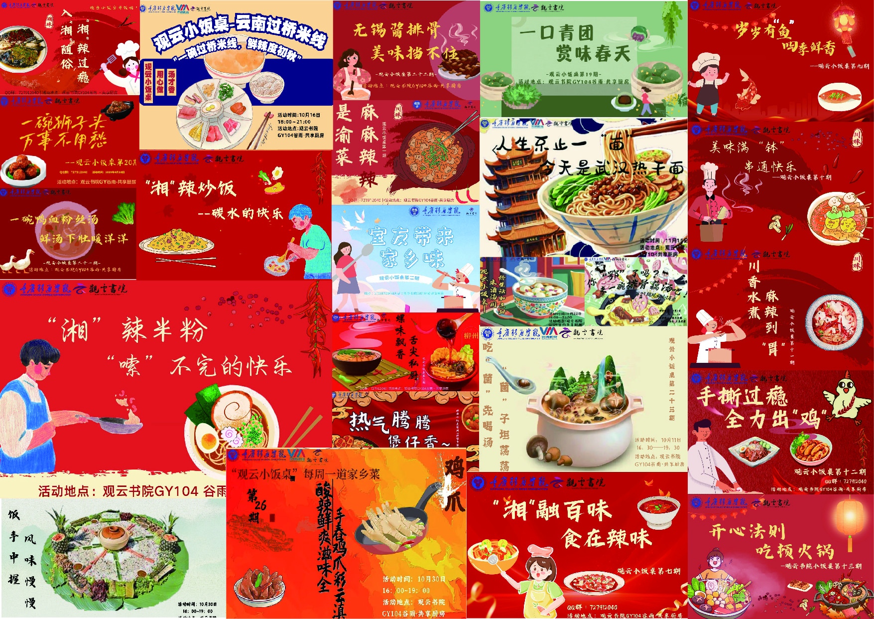 从锅碗瓢盆间的忙碌到味蕾上的满足,“观云小饭桌”用心记录家乡味道。截至目前,这个每周推出一道地道家乡菜的美食系列已带来了33道经典菜品,覆盖重庆、广东、广西、湖南、四川、东北、江苏、江西、云南和湖北十个省份。从南到北,从酸辣到鲜香,不仅是菜肴,更是一种情感的传递,成为同学们回味家乡、共叙乡情的重要纽带。“观云小饭桌每周1道地道家乡菜”也成为书院特色活动的标志性缩影之一,吸引着师生们共同参与,享受美味与文化的碰撞,让忙碌的学习生活多了一份味觉的慰藉与心灵的温暖。