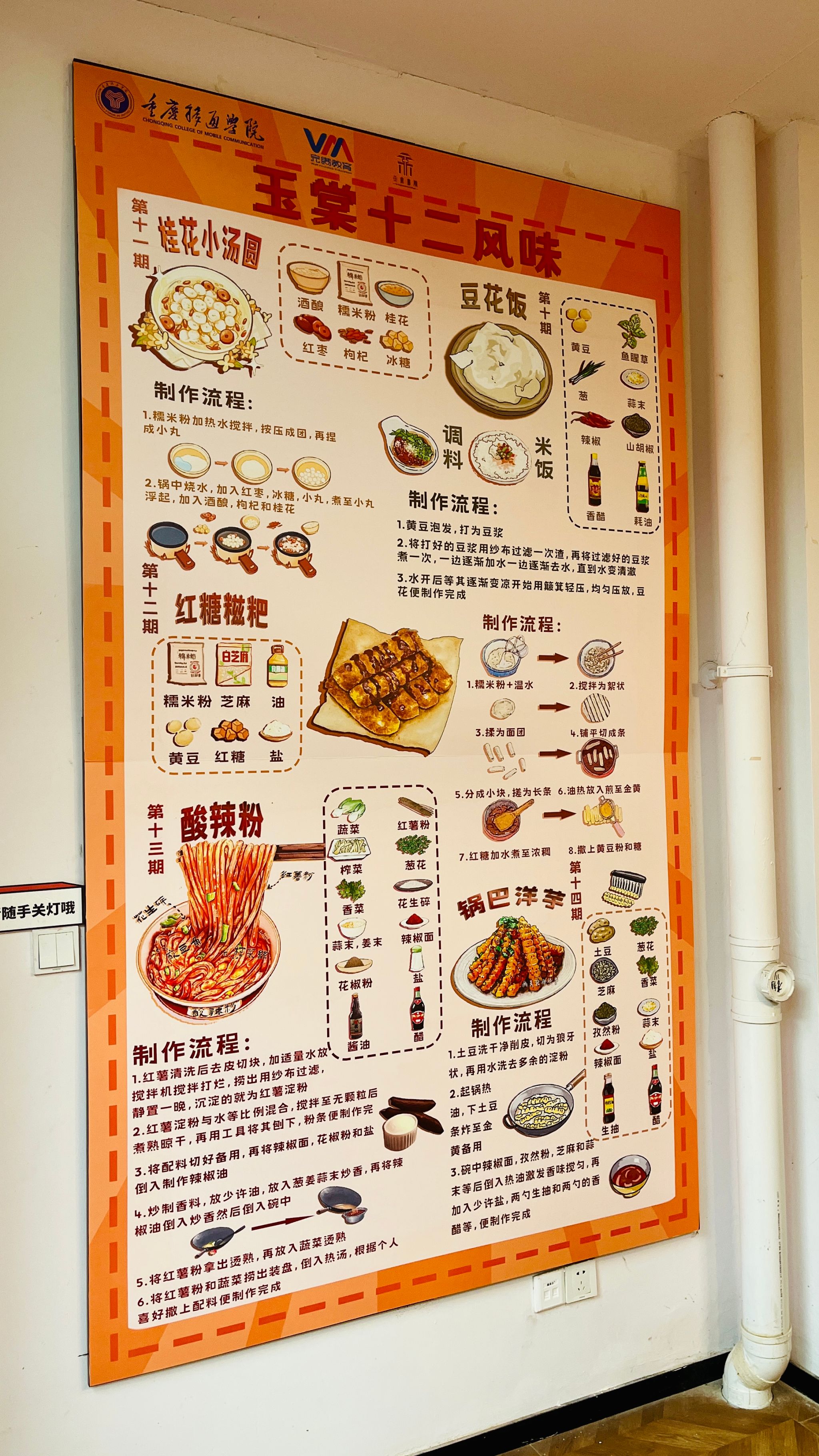 玉棠书院的烟火盛地。灶火明灭间,食材变幻奇妙舞姿。油盐酱醋,协奏美味乐章;锅碗瓢盆,碰撞生活韵律。学子于此,展厨艺,学烹饪,从家常小炒到精美点心,将四方风味汇聚,让爱与温暖在舌尖流淌,共绘书院美食文化的斑斓长卷。
