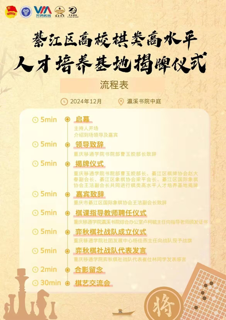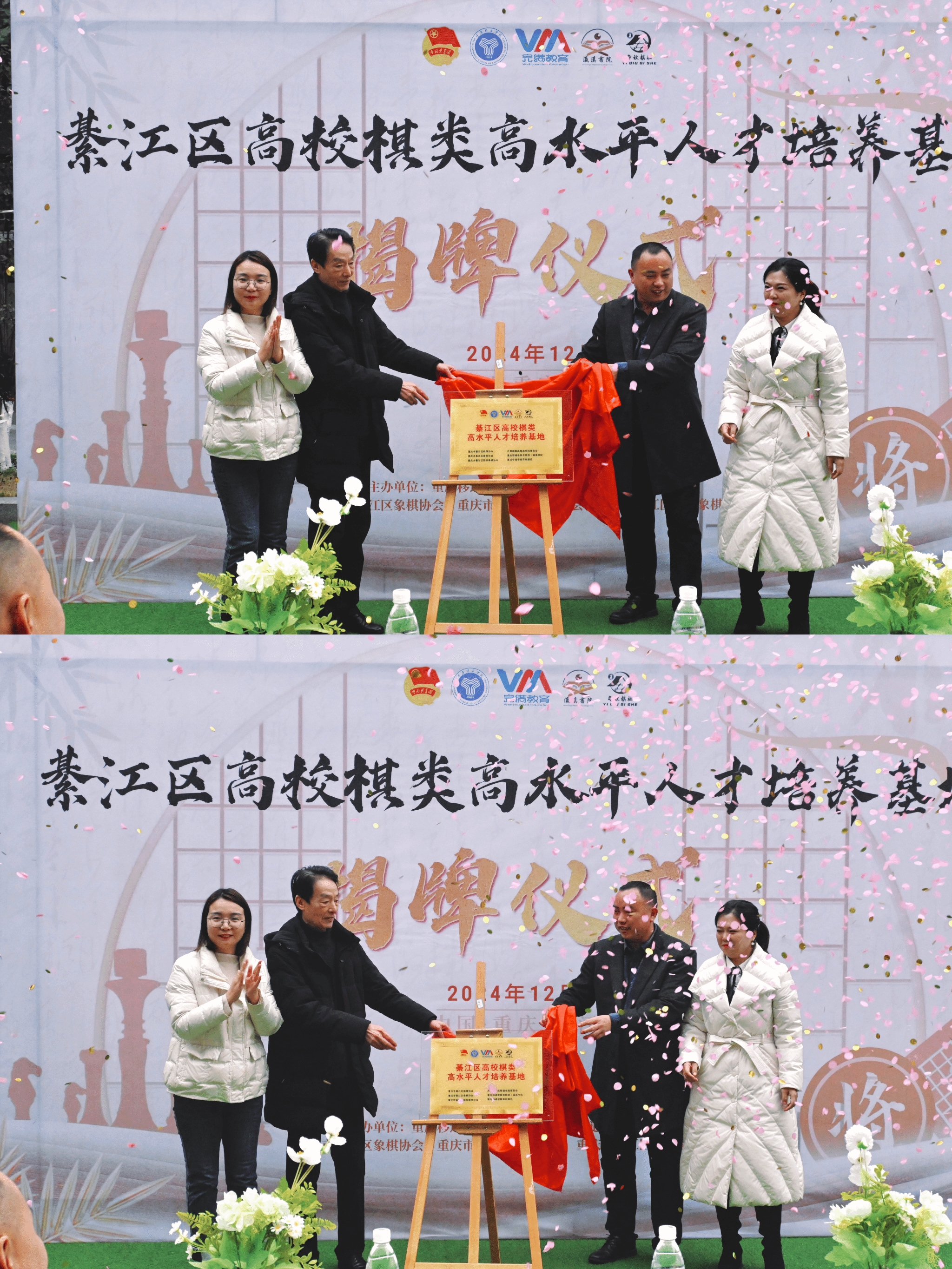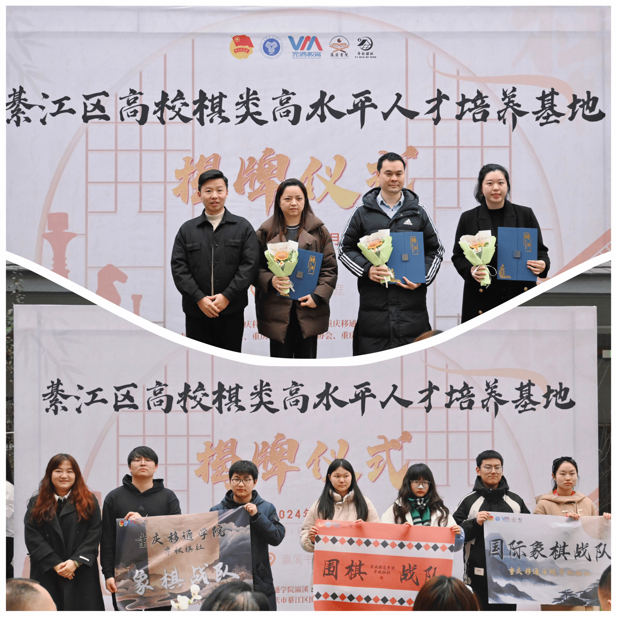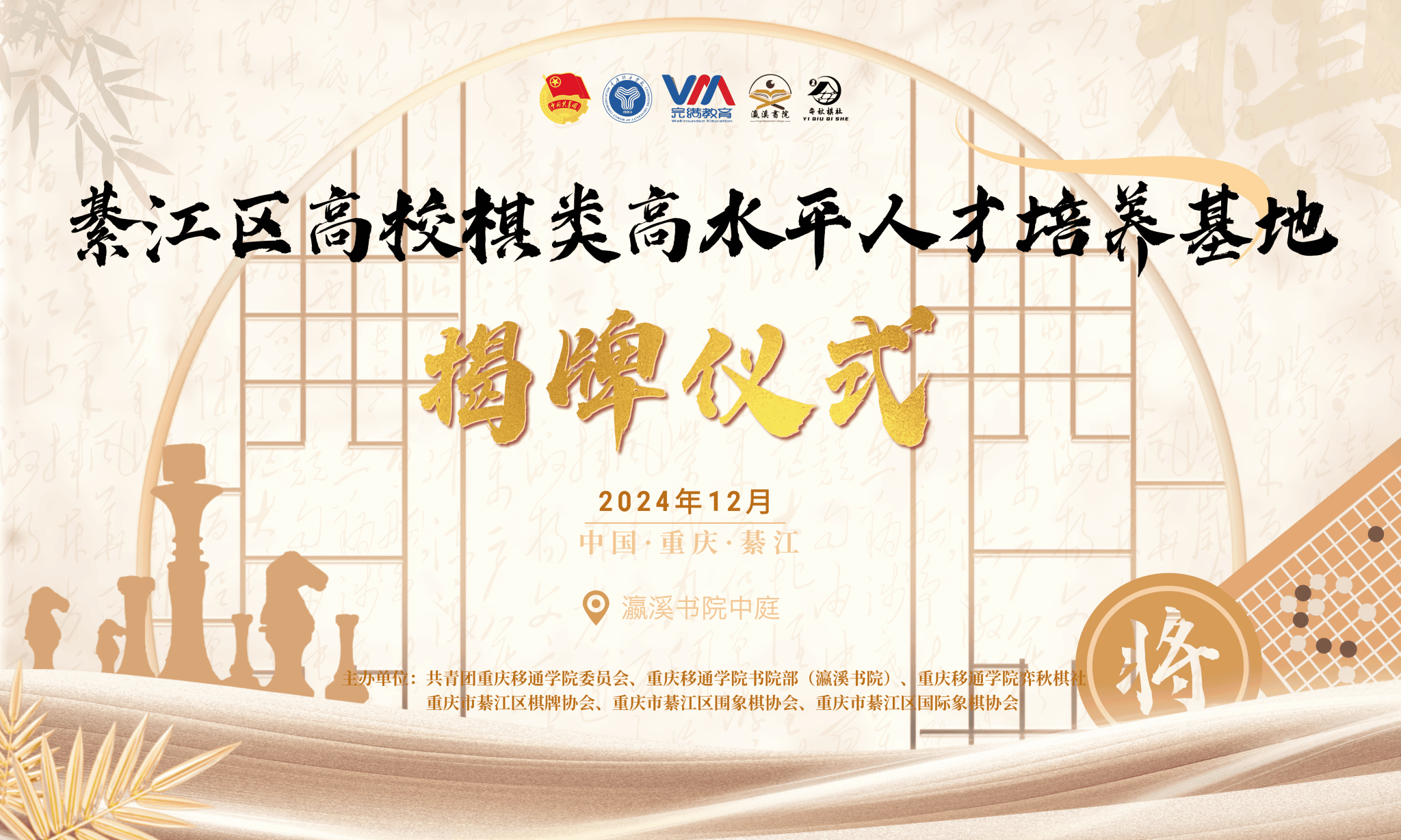 本次揭牌仪式由共青团重庆移通学院委员会、重庆移通学院书院部(瀛溪书院)、重庆移通学院弈秋棋社、重庆市綦江区棋牌协会、重庆市綦江区象棋协会和重庆市綦江区国际象棋协会联合主办,邀请到綦江区三大棋协各协会领导和协会成员参与,并对綦江区高校棋类高水平人才培养基地现有的培养资源、培养体系及未来的培养方向、培养路径进行研讨,期望整合各方资源,形成合力,将棋类运动的精髓融入高校教育体系,进一步锻炼学生的前瞻思维和逻辑能力,也为棋类人才培养基地建设和棋类运动的可持续发展提供有力支撑。