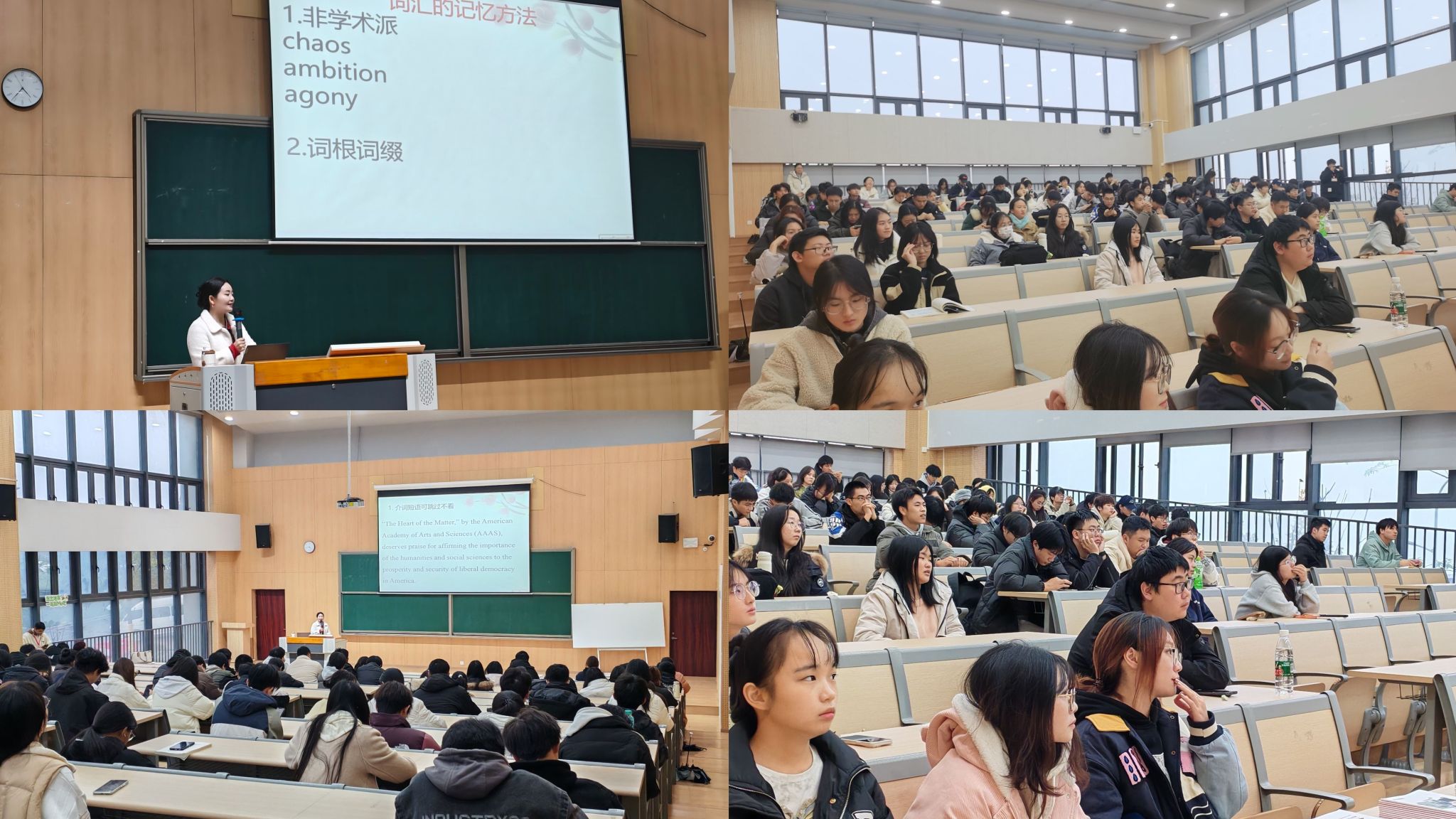 为帮助学子在考研政治备考中取得佳绩,北京大学访问学者、文都考研政治指导名师蒋中挺副教授到场传授政治科目备考经验。活动现场,蒋老师为学子们剖析考点精髓,提供高效的复习策略。在蒋老师的讲解后,有学子表示他收获的经验是扎实地学习基础知识、灵活的应用知识以及实时关注时政对政治复习的效果十分重要。为助力大家在备考英语之路上披荆斩棘,成功登顶,重庆文都教研院院长胡勤敏老师为大家分享英语备考经验。胡老师将复杂的知识点化繁为简,通过实战案例生动讲解长难句分析、阅读技巧等难点,为学子答疑解惑。面对英语备考的难题,学子们纷纷表示掌握到英语备考技巧、学到高效的学习方法,也学会根据自己的实际情况制定学习策略,树立战胜英语的信心与决心。