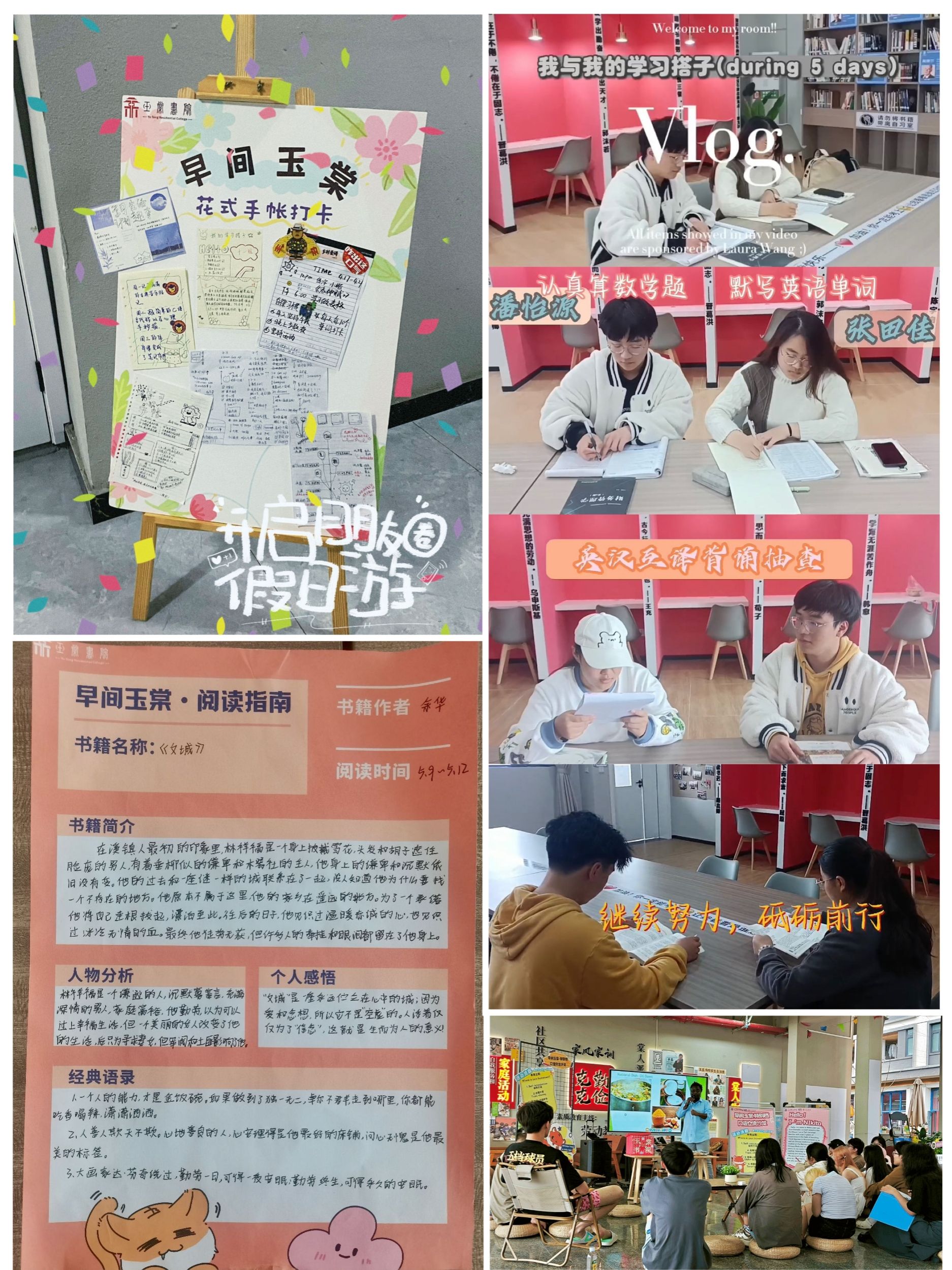 为深化书院育人功能,满足学生个性化发展需求,玉棠书院围绕习惯养成、兴趣拓展、视野提升等方面,以多种多样的形式,策划早间玉棠系列活动。前期玉棠书院已开展四级英语学习、英语口语沙龙、VLOG制作、手账制作等活动。本学期玉棠书院的学子们面对备考研究生的重重挑战与困惑,感到不知所措。为精准解答这些疑惑,为考研勇士们提供全面的备考导航,玉棠书院本学期围绕考研规划、英语备考、政治攻略三大核心板块,开展第21期-23期活动,为学子们点亮前行的明灯,助力他们在考研的征途中稳健前行。