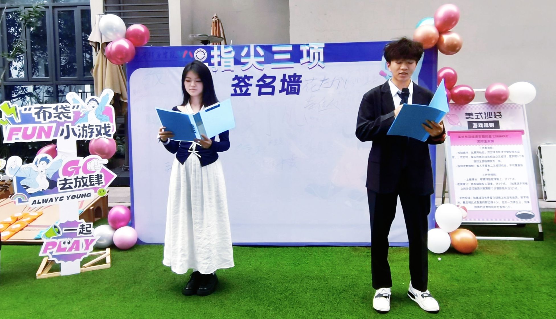 在首期活动现场,掼蛋的舒适桌椅、崭新纸牌,美式布袋球的目标斜板、色彩斑斓的布袋,桌面光滑的桌面、精致的道具冰壶,让参与者跃跃欲试。活动中,学子们积极参与,无论是纸牌桌上的智勇交锋,还是布袋球场的灵活投掷,亦或是冰壶赛道上的精准推送,都让人感受到竞技的魅力和团队协作的力量。每一次精彩瞬间的爆发,都伴随着学子们的欢呼与掌声,让活动现场充满欢乐与激情。