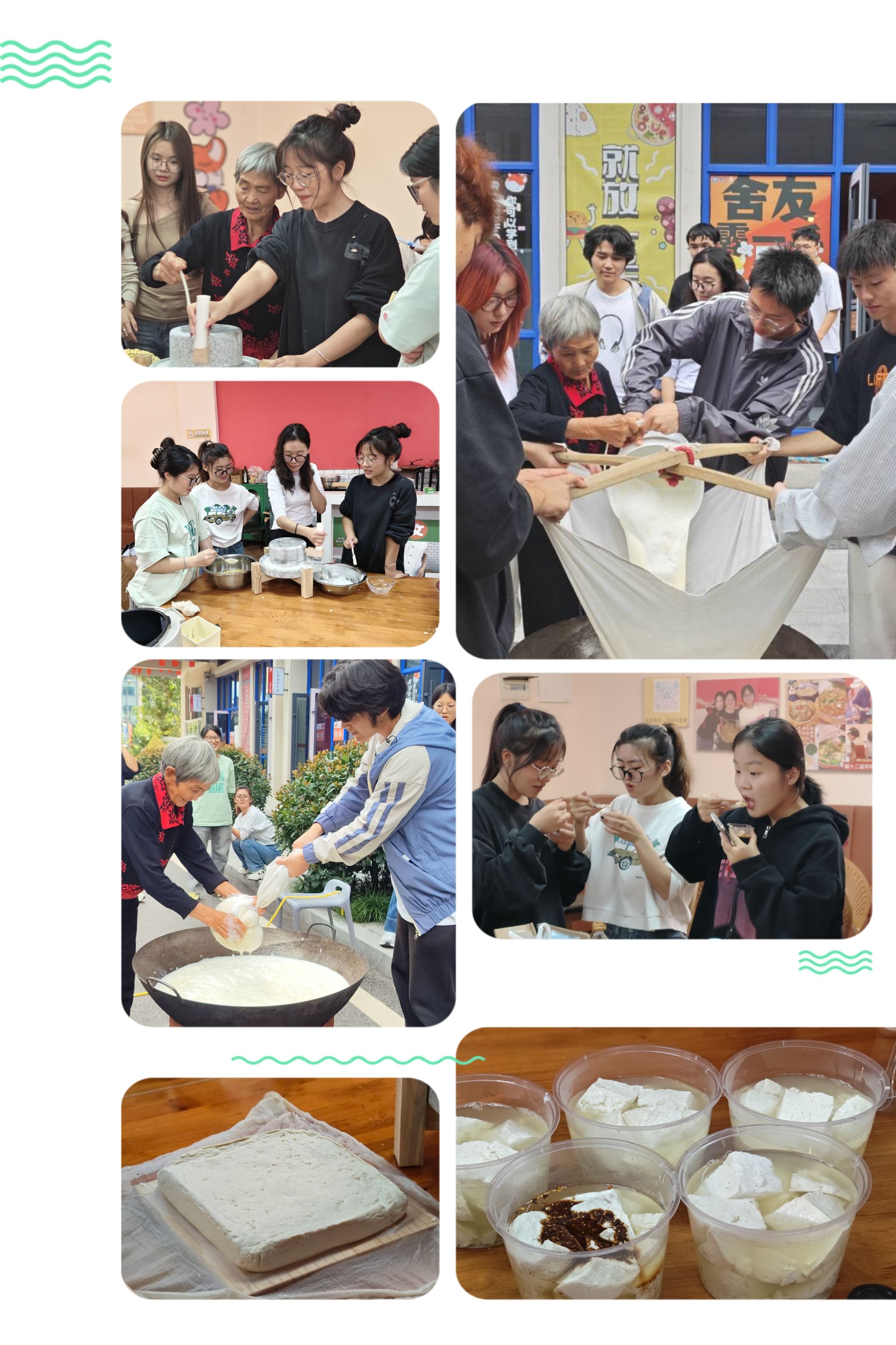 在书院的一方天地里,年轻的学子们围聚一堂,开启一场探寻传统的奇妙之旅。学子们亲手将饱满的黄豆浸泡、研磨,看着乳白的豆浆汩汩流出;卤水点豆花,他们见证着豆浆神奇地凝结、变身;再亲手压制成方正的豆腐,烹饪出软糯喷香的米饭,精心调配出地道的佐料。他们不再是旁观者,而是传统美食的传承者。学子们真切体悟到传统美食制作工艺背后的魅力,也使得这份独属于重庆的“家”的味道,在书院的得以呈现。