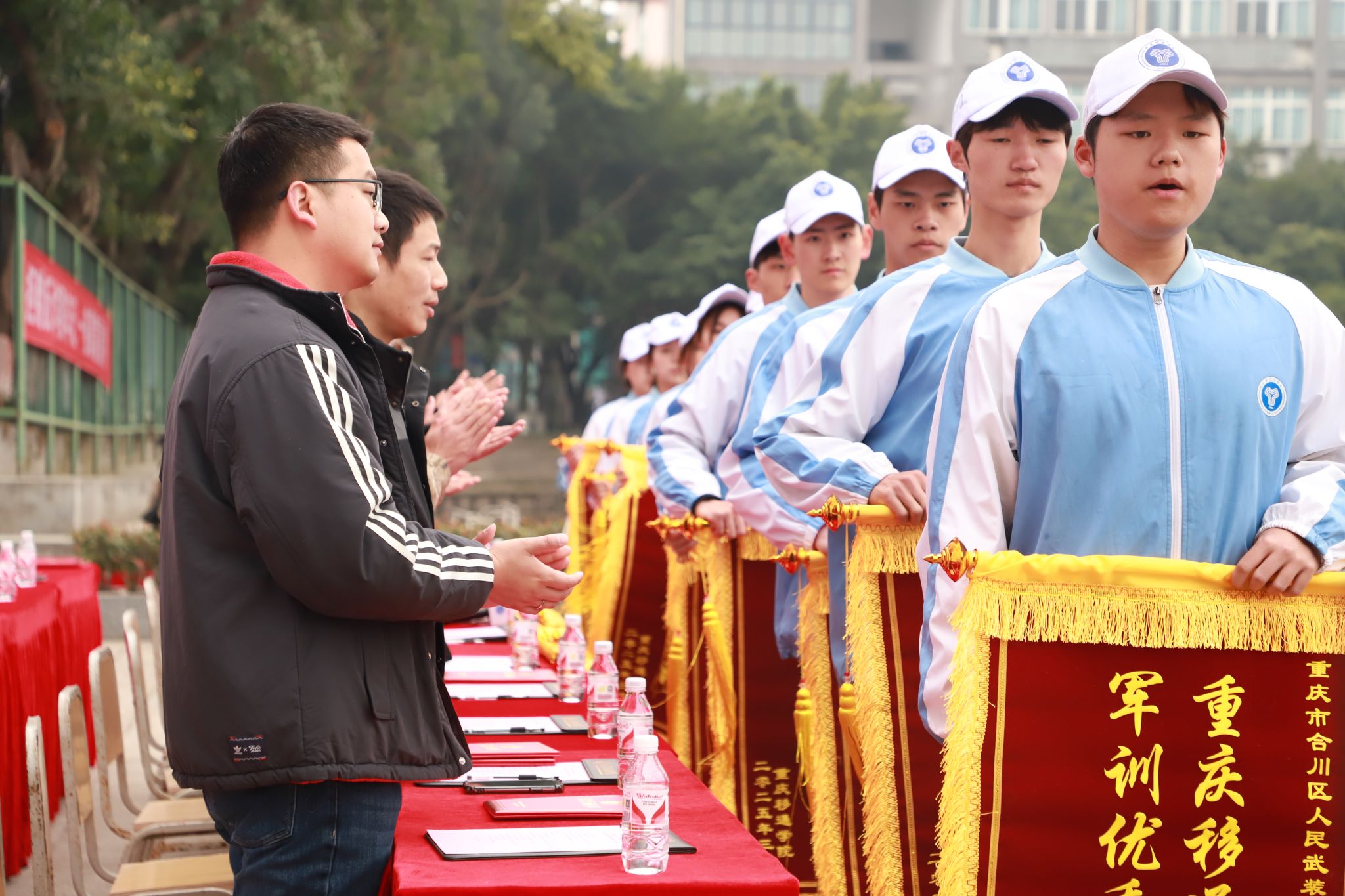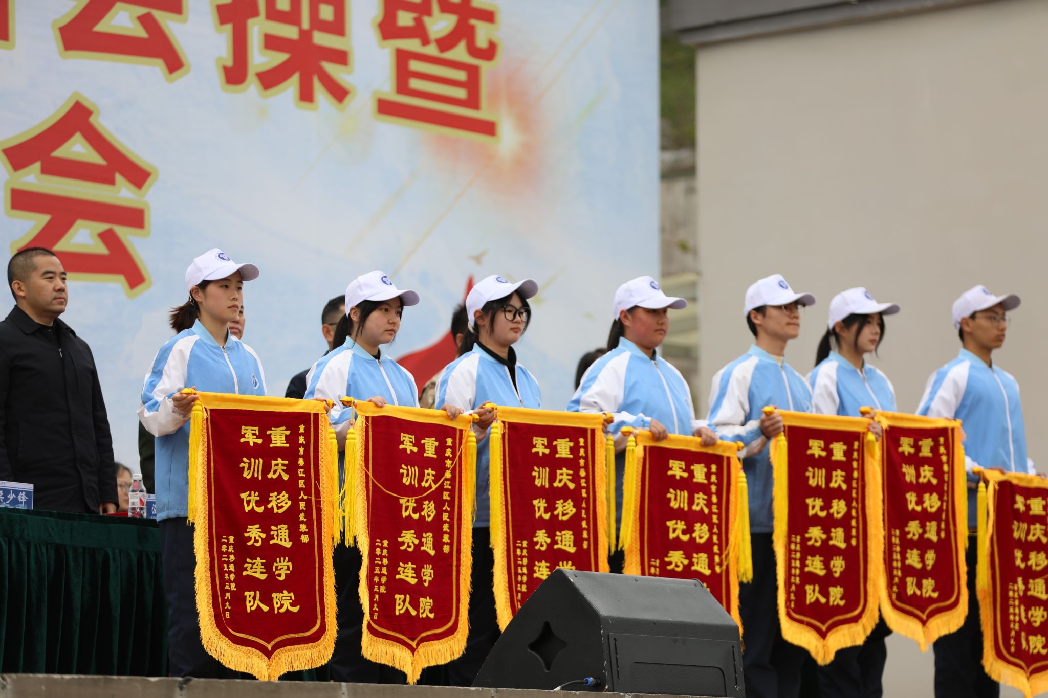 我校校长助理尹浩亮与谢银平宣读《重庆移通学院关于表彰2024级学生军训工作先进集体和优秀个人的通报》。校领导依次向此次军训工作中表现突出的优秀连队、教导员、指导员、学员进行表彰,并颁发锦旗和荣誉证书。我校党委书记、政府督导员何先刚与常务副校长王永周代表学校向合川区与綦江区人民武装部赠送锦旗,为军事训练画上阶段性句号。