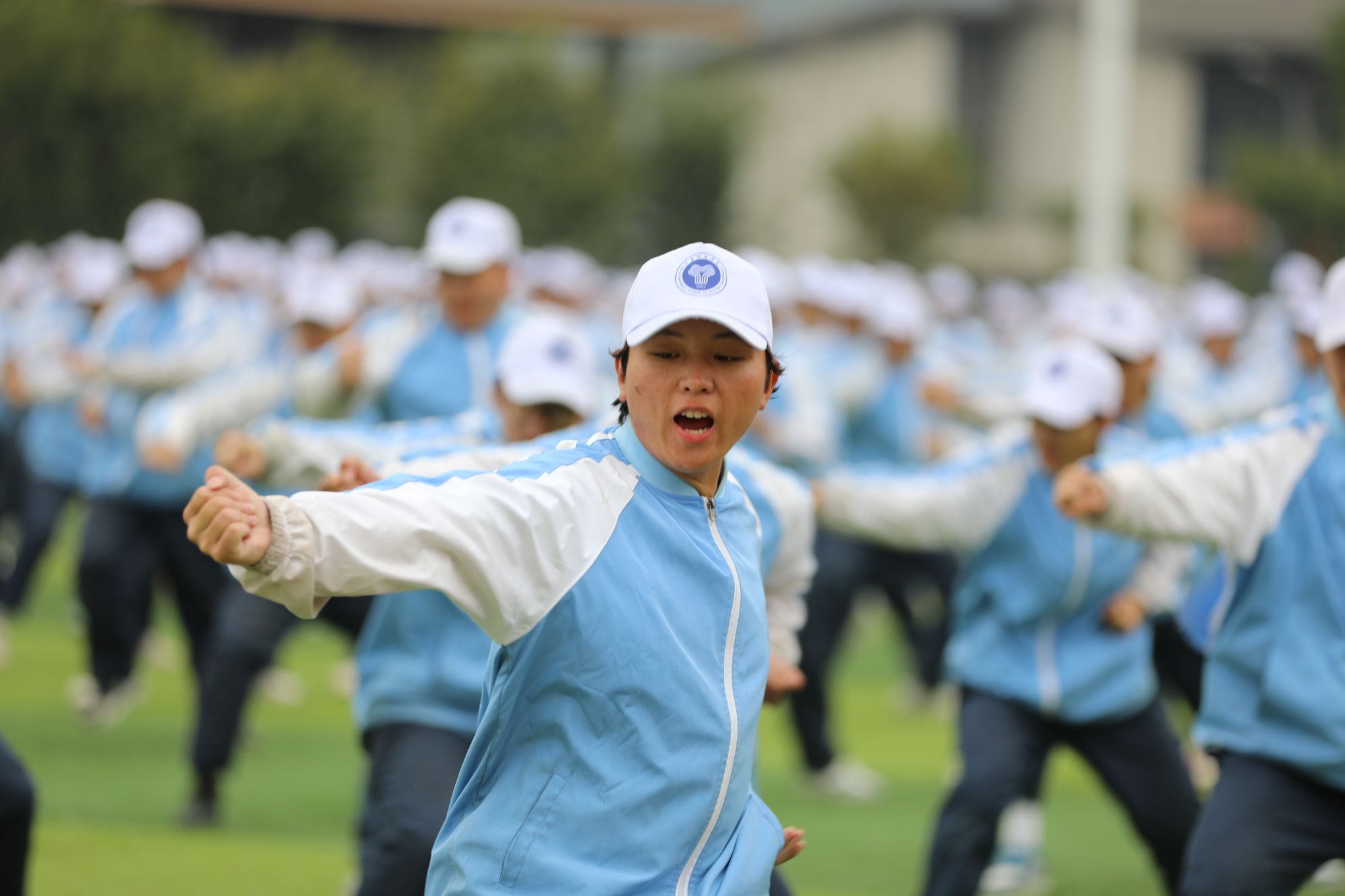 红旗飘扬,国歌嘹亮,新生们身着同色系服装,昂首挺胸,目光坚定,以标准军姿向国旗敬礼,共同奏唱国歌。升旗仪式结束后,在军训总教官的指挥下,双校区军训会操正式开始。