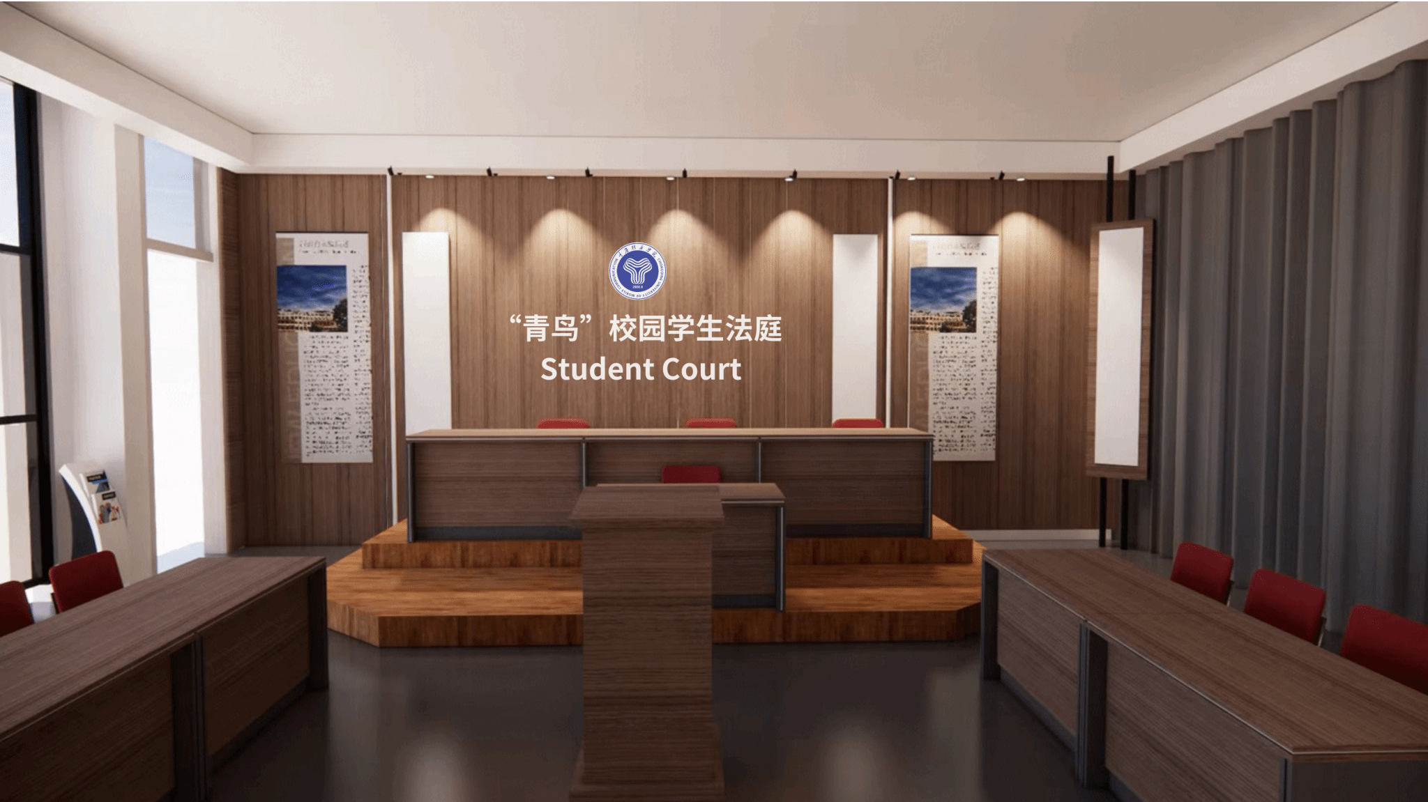 “青鸟”校园学生法庭——社区青年权益综合治理中心是在新教育理念指导下,青年学生参与校园法治实践、提升法治素养的重要平台,更是推动校园治理现代化的重要载体。同学们可以对校园建设建言献策,化解纠纷矛盾,对学校办学治校、人才培养、管理服务等环节进行监督。校园学生法庭不是简单的纠纷调解工具,而是一个“微型社会实验室”,通过建设校园学生法庭来模拟真实社会场景,让学生在调解矛盾、审议提案、监督运行的过程中,参与校园管理、权益平衡、价值判断的完整实践。