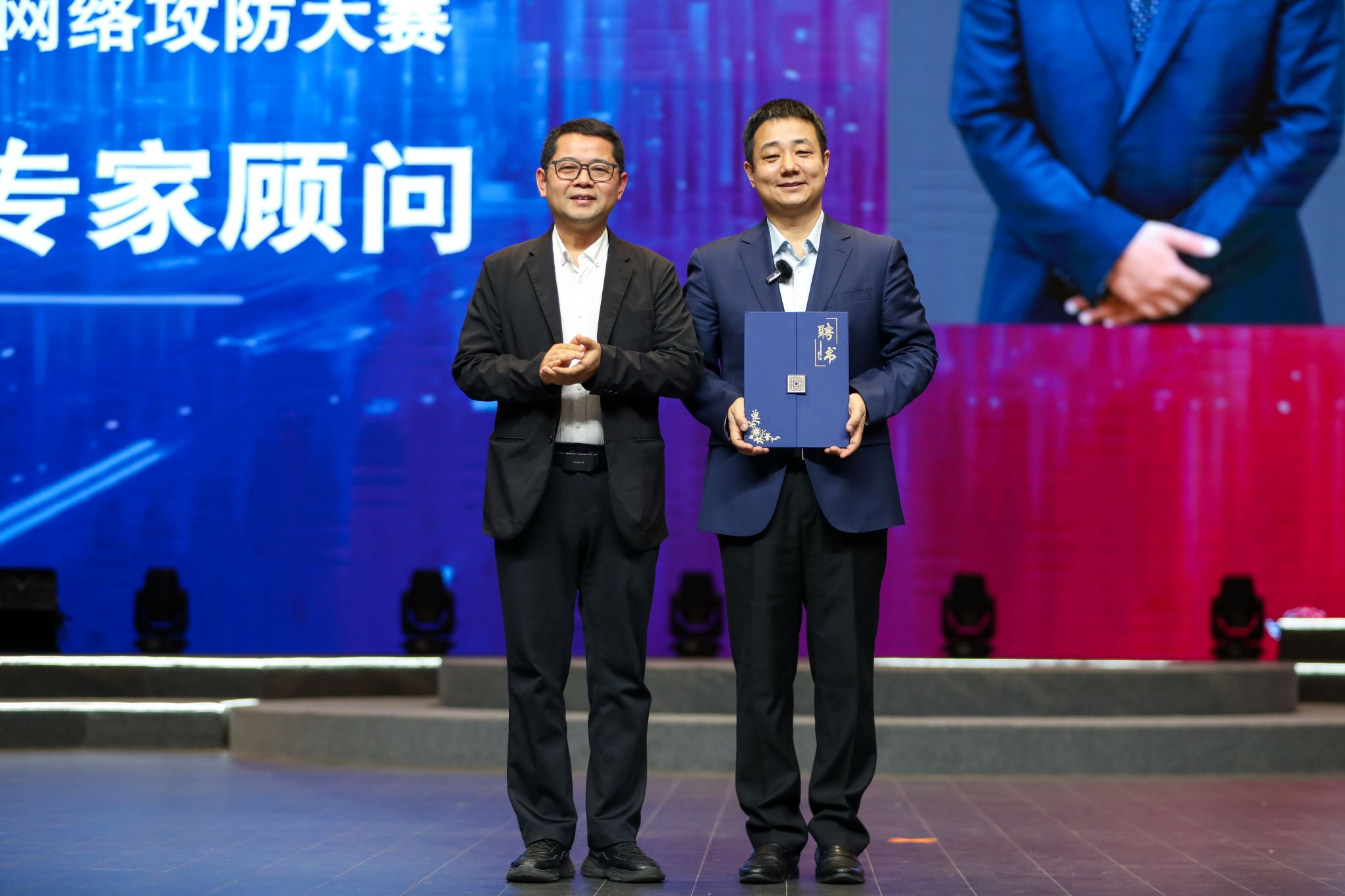 (常务副校长王永周为朝乐门教授颁发 "古剑山" 全国大学生网络攻防大赛专家顾问聘书)