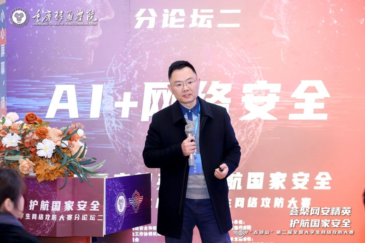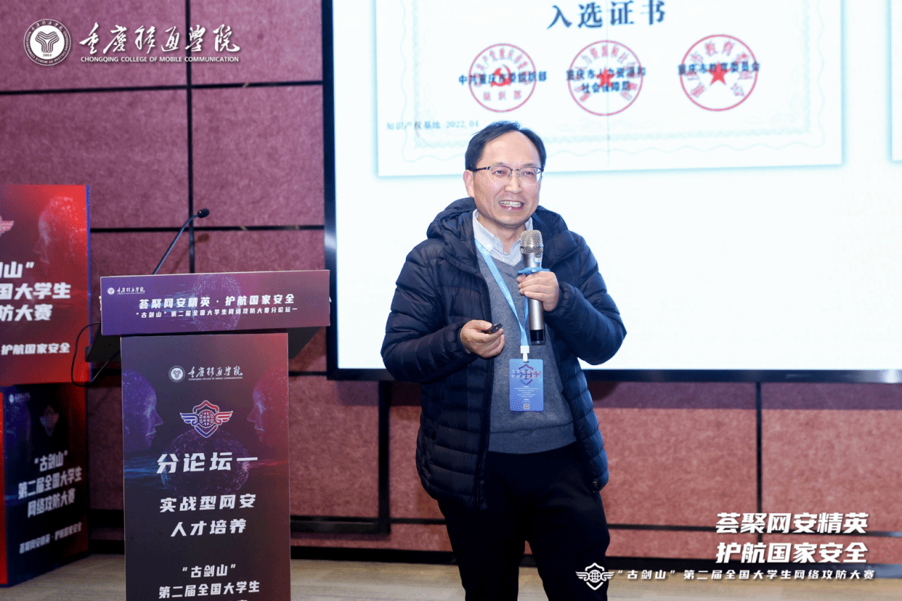 重庆邮电大学网络空间安全与信息法学院博导陈龙教授以“安全类实战型人才培养探索与实践”为主题,结合重庆邮电大学经验,分享了安全类人才培养的创新路径。他强调,实战能力需通过解决真实问题来锤炼,尤其在电子数据取证、司法鉴定等领域。他特别指出,实战人才需兼具技术深度与法律素养,未来将进一步深化校企协同,打造西部网络安全人才高地。