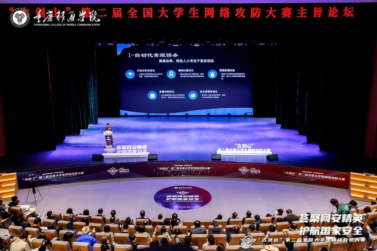 论坛开幕式上,重庆市綦江区政协副主席唐应良认为本次“古剑山”全国大学生网络攻防大赛为全国大学生提供了一个展示才华、交流经验、提升能力的广阔舞台,充分体现了重庆移通学院在服务国家战略、推动网络安全教育方面的担当和作为。他向在场学生及广大青年科技人才提出三个期待:一是做技术创新的尖兵,更做建言献策的谋士;二是做代码世界的侠客,更做红色基因的传人;三是做虚拟空间的守护者,更做实体经济的护航员。