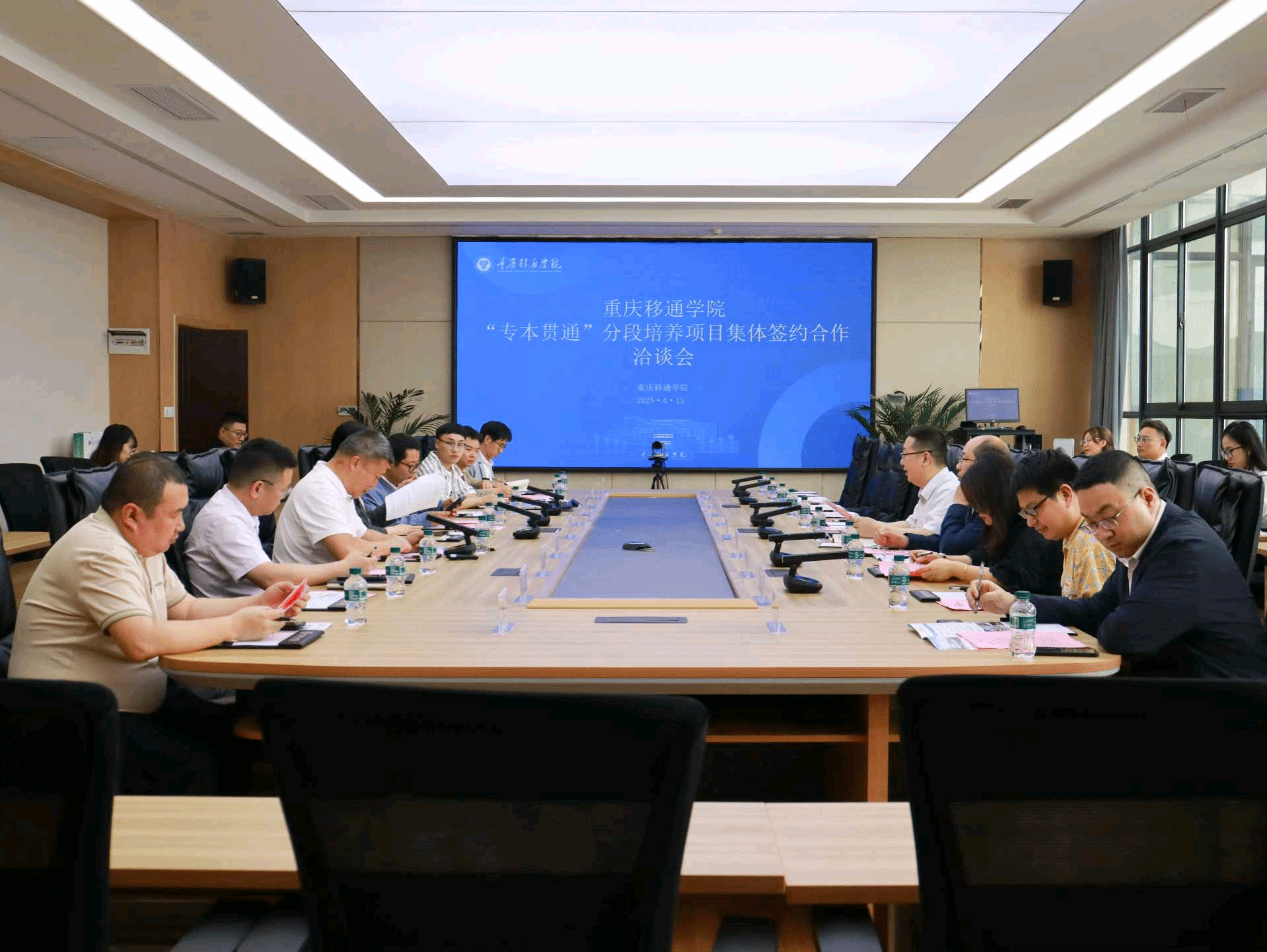 2025年4月15日,重庆移通学院在綦江校区瀛山图书馆424会议室召开“专本贯通”分段培养项目集体签约合作洽谈会。会议由重庆移通学院大数据学院院长潘显兵主持,重庆艺术工程职业学院、重庆资源与环境保护职业学院、重庆城市职业学院、重庆交通职业学院四所合作院校代表以及重庆移通学院常务副校长王永周、副校长孙玺、招生处处长张成川及相关职能部门负责人,20余人参会。