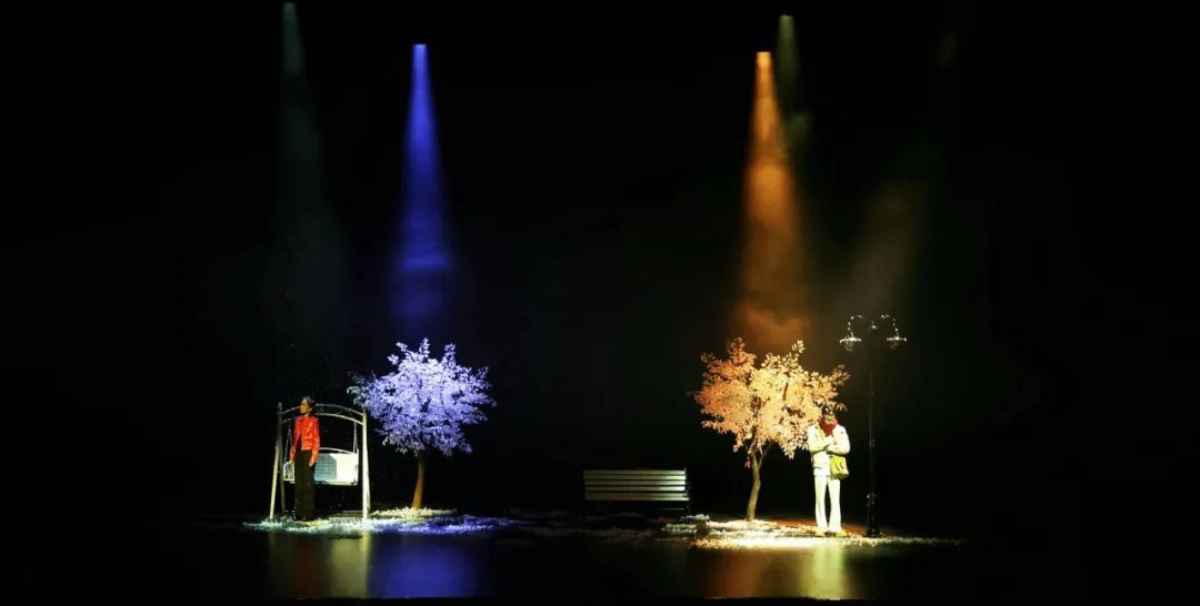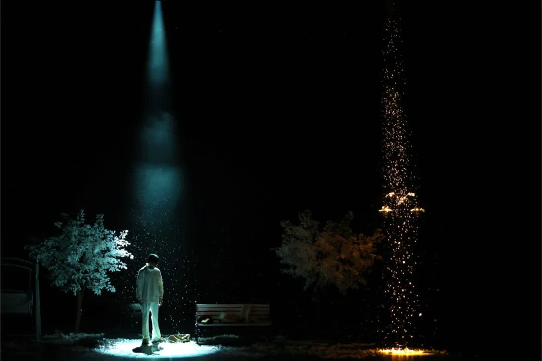 作为闭幕大戏,《冬》以冬夜公园为凛冽舞台,聚焦大学生李书航与打工者陈晓兰这对恋人理想与现实的撕裂博弈。浪漫主义诗人与背负生存枷锁的底层女孩,在飘雪中展开理想与现实的血色博弈:秋千架上摇晃的纯真往事,终被药瓶与银行卡的碰撞声击碎。剧作通过围巾的温暖缠绕与银行卡的冰冷交割、诗意与生存的冲突,剖开阶级鸿沟下人性的尊严挣扎:雪地上徒留的脚印不仅是个体命运的悲鸣,更化作对系统性压迫的无声控诉——纯白雪花覆盖的从来不是公平世界,而是将底层群体推向绝境的沉默寒冬。话剧层层揭示底层群体的生存困境,呈现出一场关于残酷青春的苦涩独白。