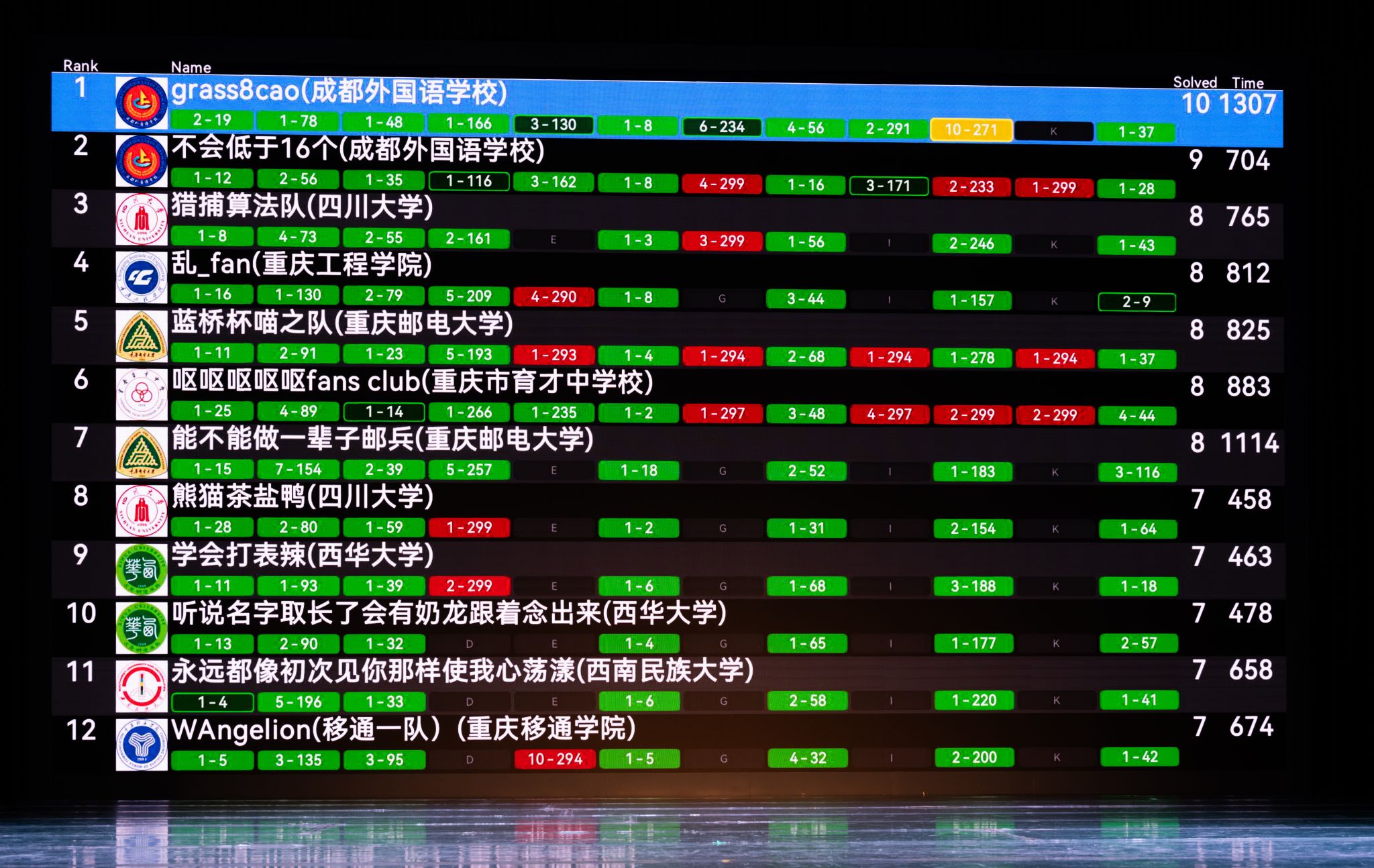 5月10日,由重庆市教委和重庆计算机学会主办的第十三届重庆市大学生程序设计大赛在重庆大学虎溪校区圆满落幕。本届比赛吸引重庆、四川、云南等多地知名高校共251余支队伍参赛。重庆移通学院根据前期校赛选拔出4支队伍参赛,经过激烈角逐,突破纪录取得1项金牌和1项铜牌的优异成绩,充分展现了重庆移通学院在程序设计领域的强劲实力和育人成效。