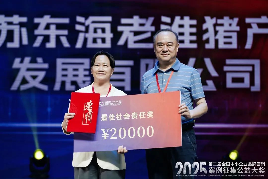 中国高等学校市场学会副会长涟漪为江苏东海老淮猪产业发展有限公司案例《“东海老淮猪:从濒临灭绝到全面振兴——责任共生驱动高质量发展的范式创新”》颁发“最佳社会责任奖”。
