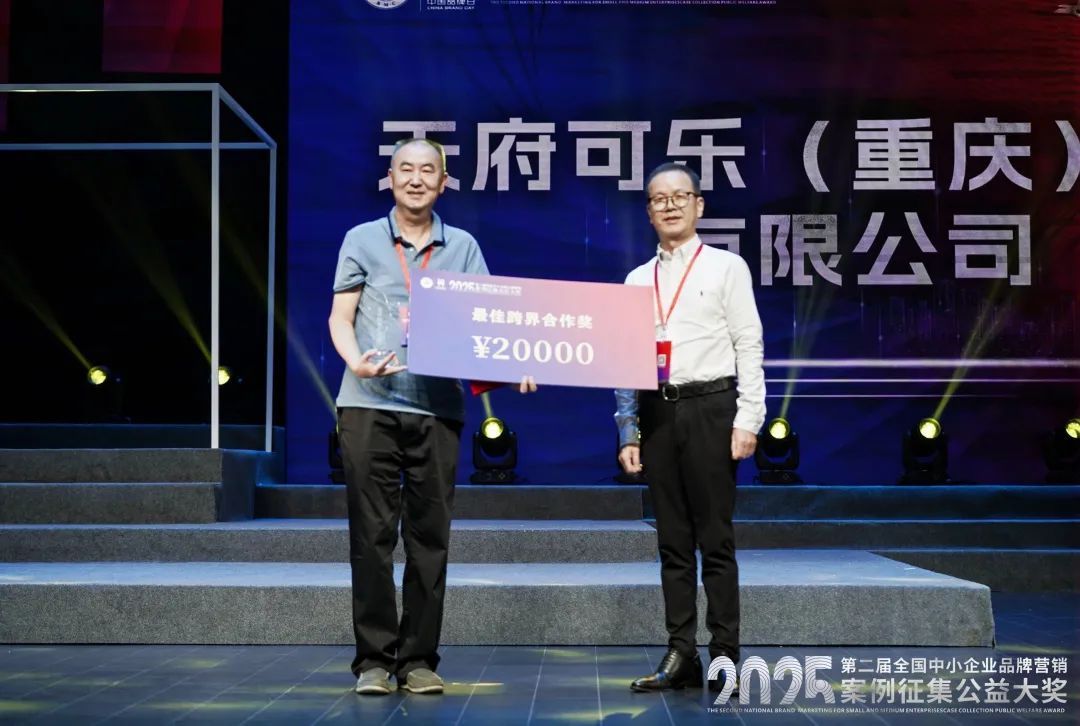 中国营销工程学会副会长、重庆市品牌学会常务副会长廖成林为天府可乐(重庆)饮品有限公司案例《天府可乐与国药太极的跨界“香”遇》颁发“最佳跨界合作奖”。