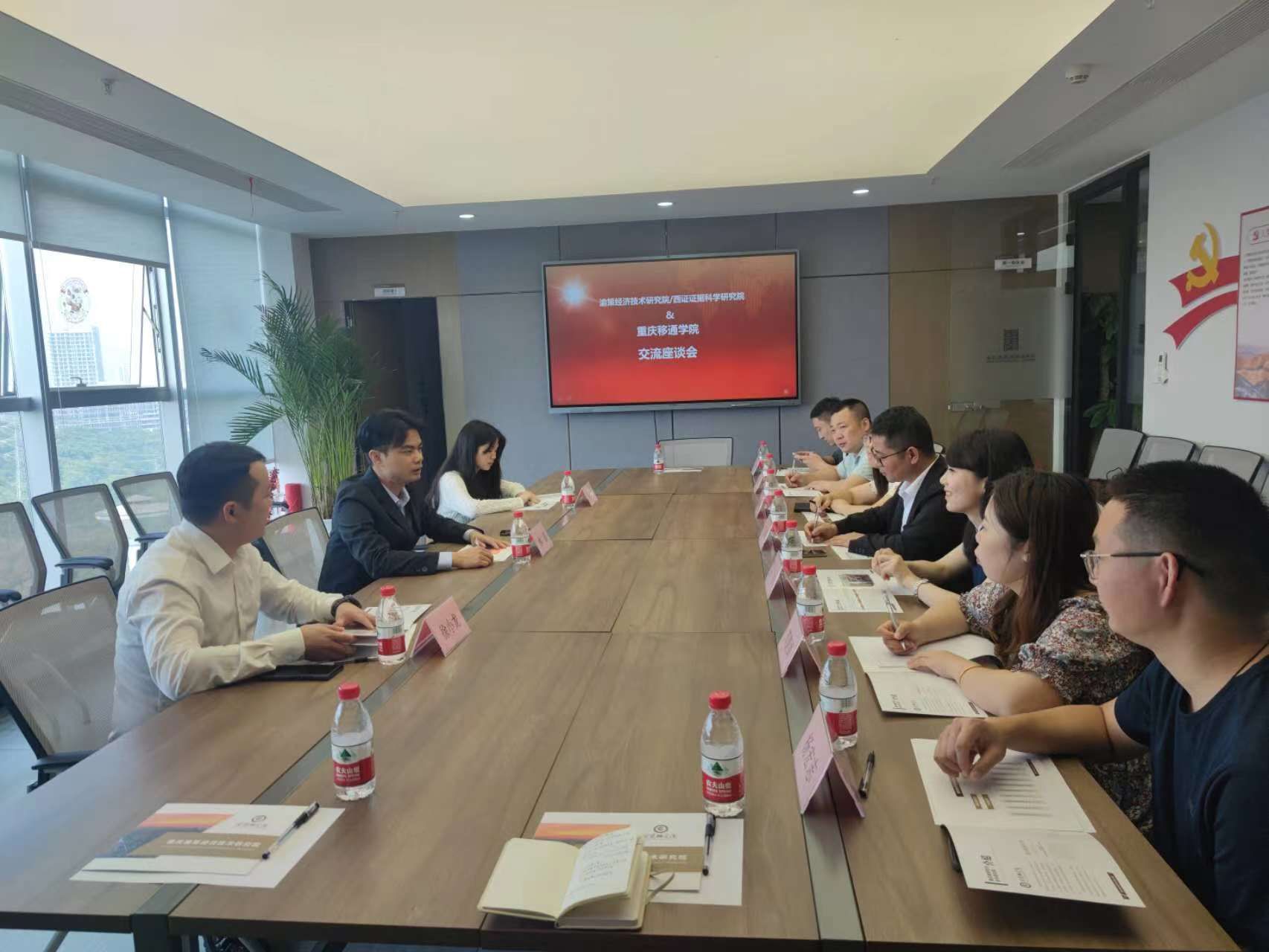 上午,王永周一行人先后走访了重庆渝策经济技术研究院、西证证据科学研究院、重庆市潮汕商会,并与企业相关负责人进行了深入交流。在座谈会上,重庆渝策经济技术研究院院长林泰对王永周一行到来表示热烈欢迎,并介绍了研究院的发展历程、已开展的项目并分析了校企合作的优势以及未来可合作的领域。徐小龙董事长介绍了网络安全的前瞻技术应用和产业发展趋势。