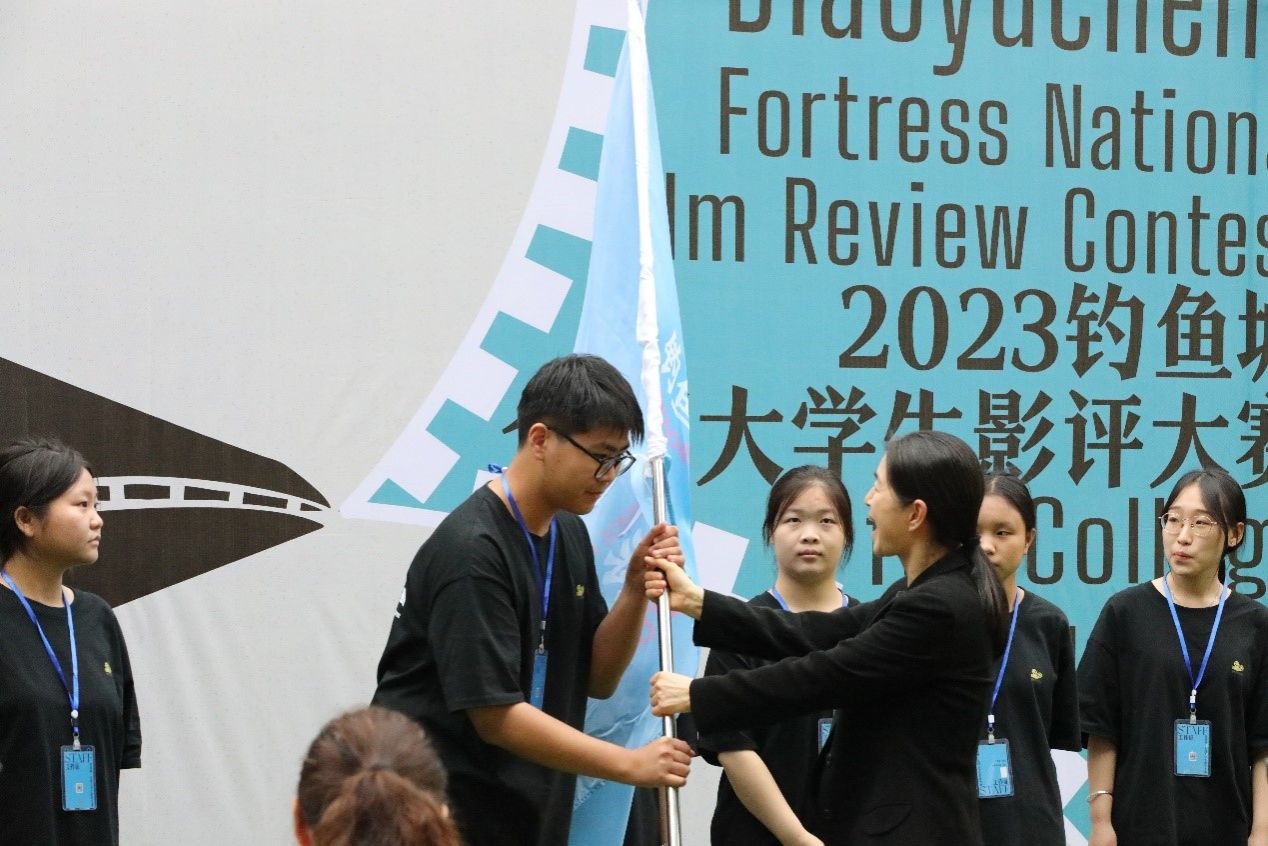 重庆市电影家协会秘书长张晓聆女士为组委会授旗。