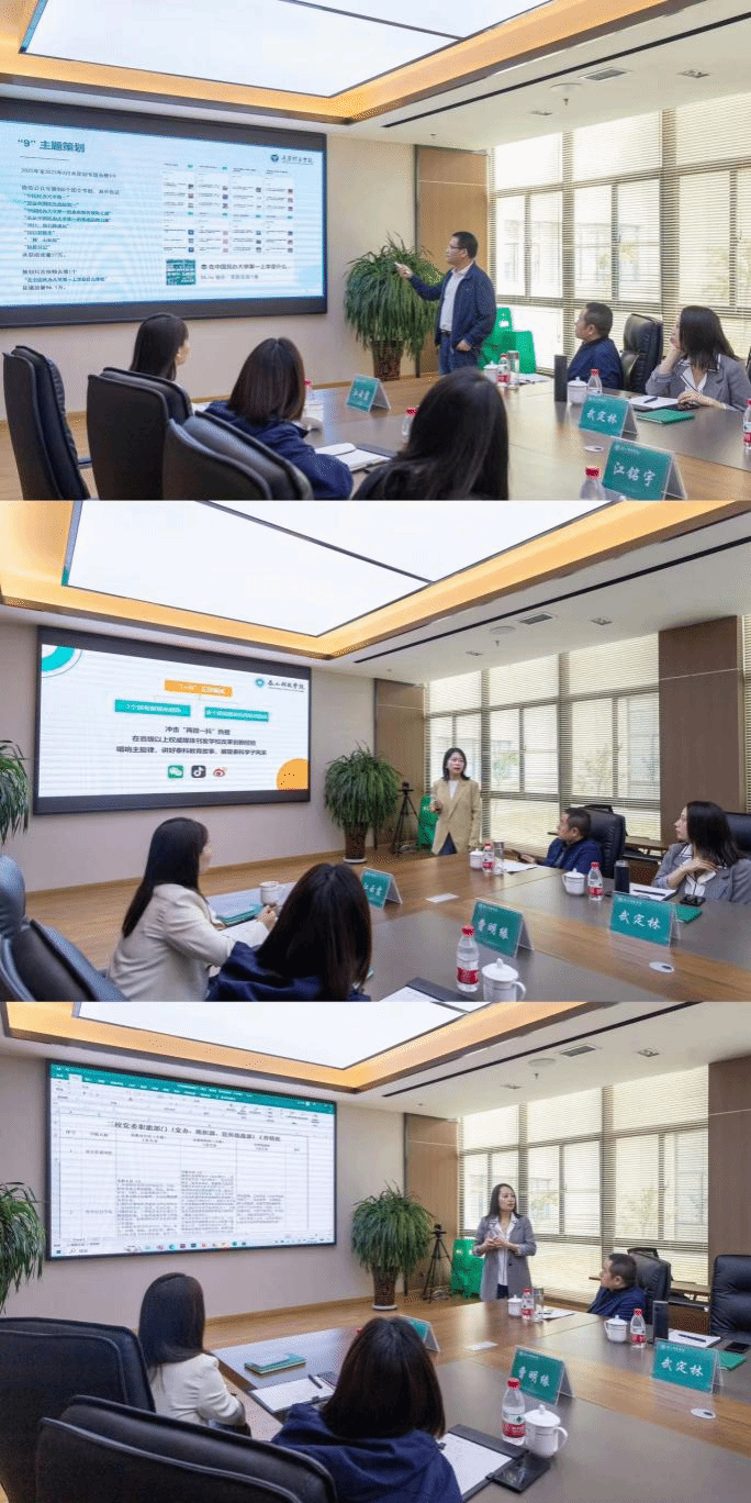 座谈会上,三校品宣工作负责人从亮点内容、外媒报道、热搜数据、校园文化及新闻宣传等方面,对部门2022-2023年度工作进行了全面的总结回顾,并结合2023年度工作要点,对近期重点工作进行了规划,明确了下一步工作思路。现场与会人员详细探讨了部门内部工作分工、舆情应对管理、特色经验做法,及学校在推进媒体深度融合方面的积极探索,并就当前学校宣传工作面临的挑战、发展的机遇等与我校调研团进行充分交流、经验分享。