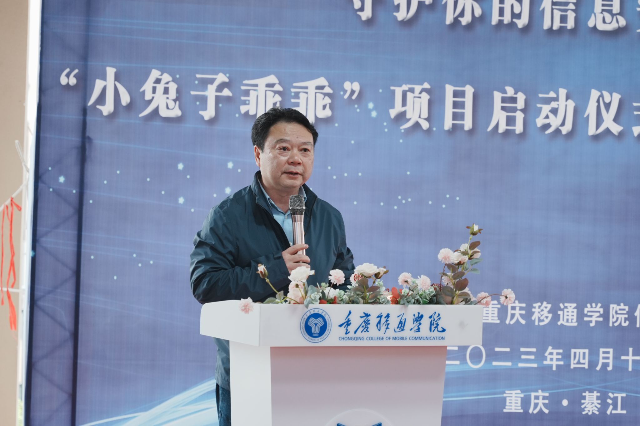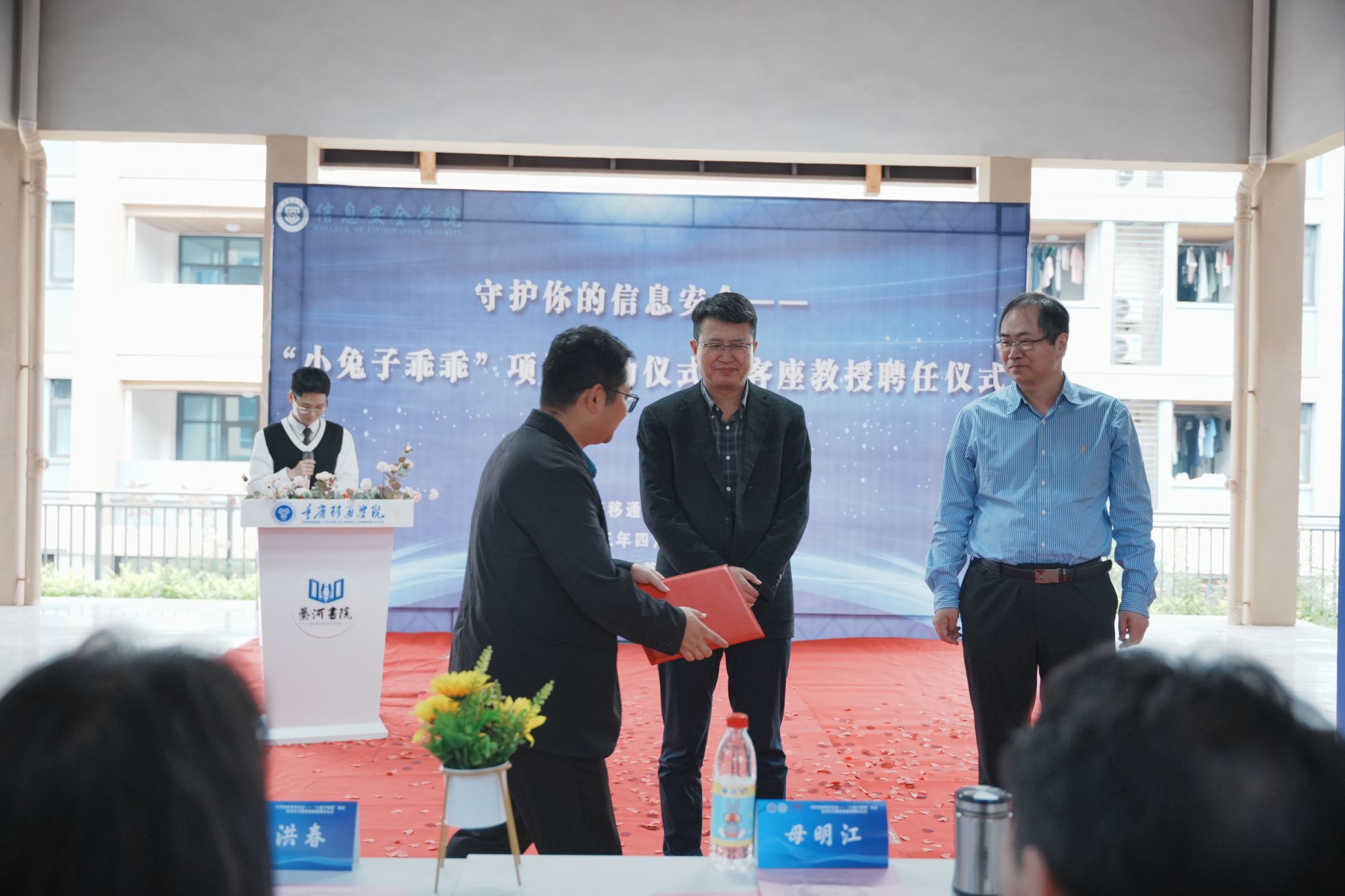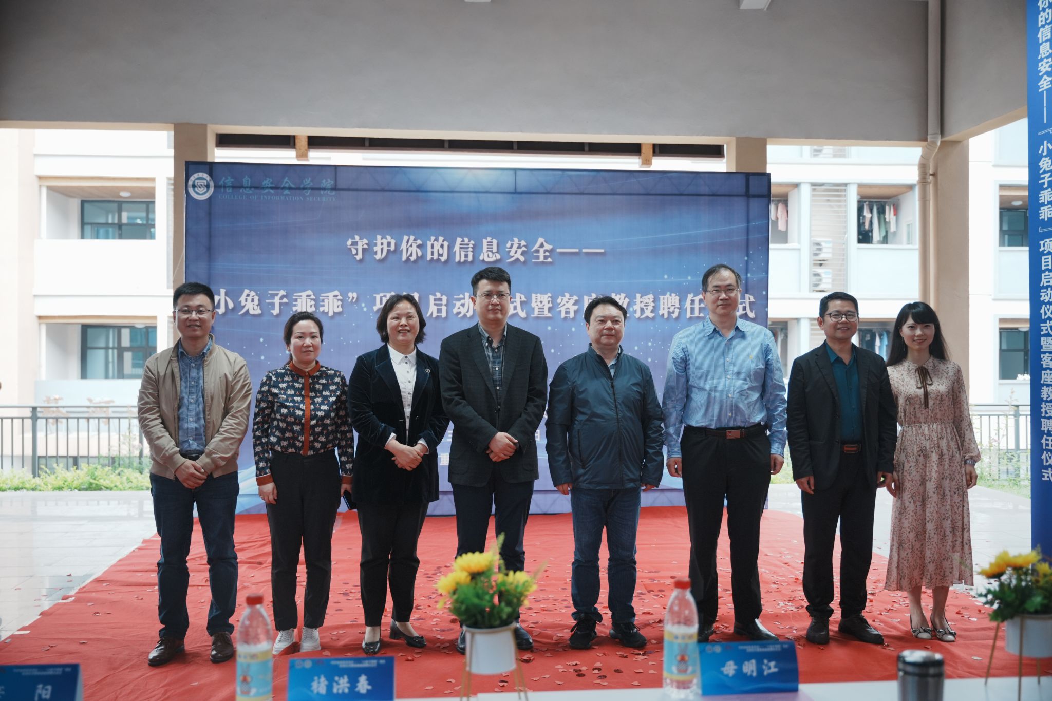 4月14日下午,由重庆移通学院主办、信息安全学院承办的守护你的信息安全——“小兔子乖乖”项目启动仪式暨客座教授聘任仪式在我校綦江校区綦河书院2号楼几何空间成功举行。綦江区人大常委会主任母明江、綦江区人大常委会副主任褚洪春、綦江区大数据应用发展管理局副局长黄洁、新加坡南洋理工大学教授黄广斌、北京邮电大学教授辛阳、重庆移通学院常务副校长王永周、学生工作处副处长梁少锋、信息安全学院副院长王宁以及学院师生代表们出席本次启动仪式。仪式由信息安全学院辅导员温朝一主持。