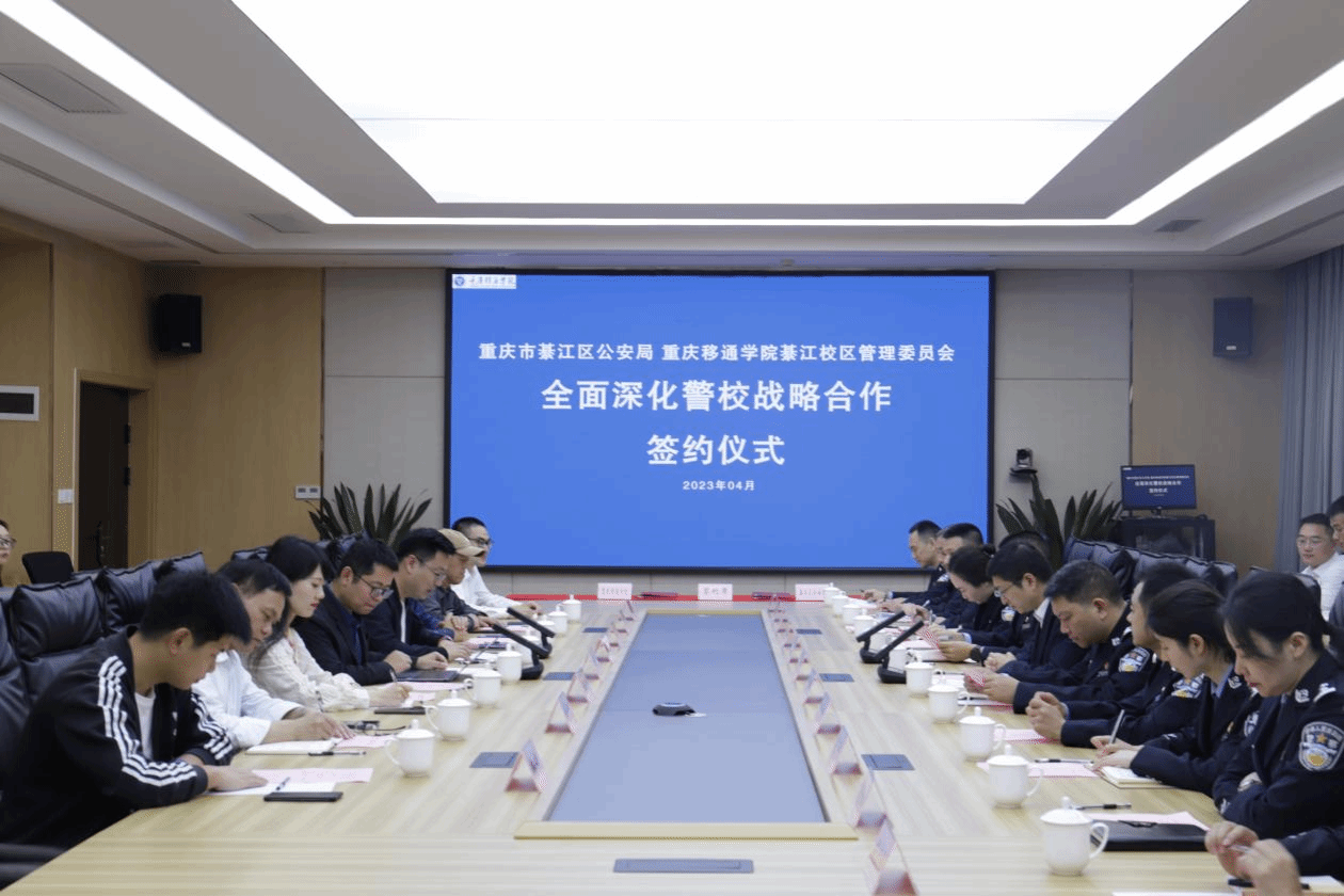为深入贯彻党的二十大精神,立足綦江区西部信息安全谷建设,着力构建警校合作双赢模式,校地充分发挥双方优势,共同打造警校合作亮点,实现警校互动、推动科技兴警,创建平安校园、建设安全稳定的校社环境。4月13日下午,重庆市綦江区公安局、重庆移通学院綦江校区管理委员会全面深化警校战略合作签约活动在图书馆第一会议室举行。重庆市綦江区公安局党委副书记、政委陈智,党委委员、副局长罗鑫江,綦江区公安局相关警种部门负责同志,重庆移通学院常务副校长、綦江校区党委书记王永周,副校长张雪占,学校相关共建合作部门负责人及代表出席签约仪式。