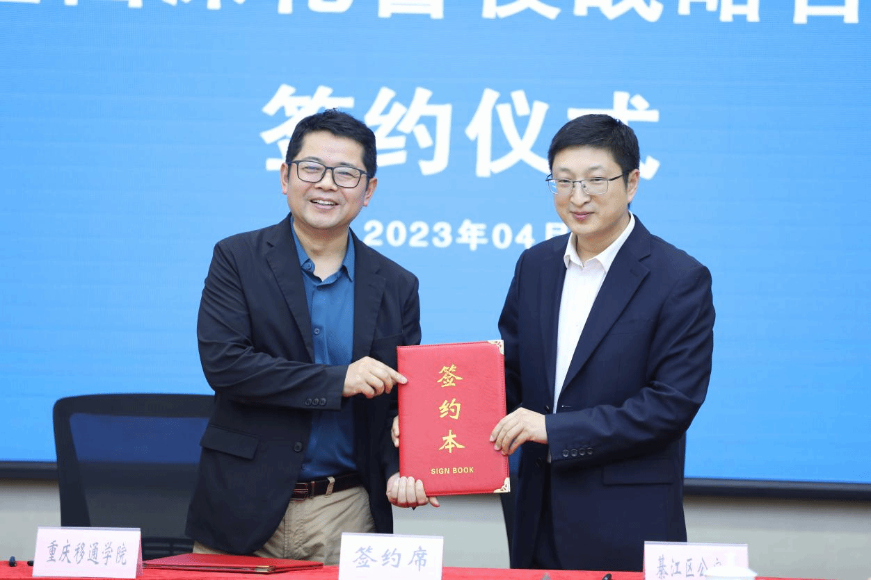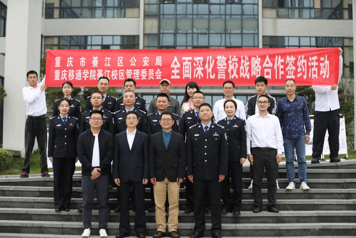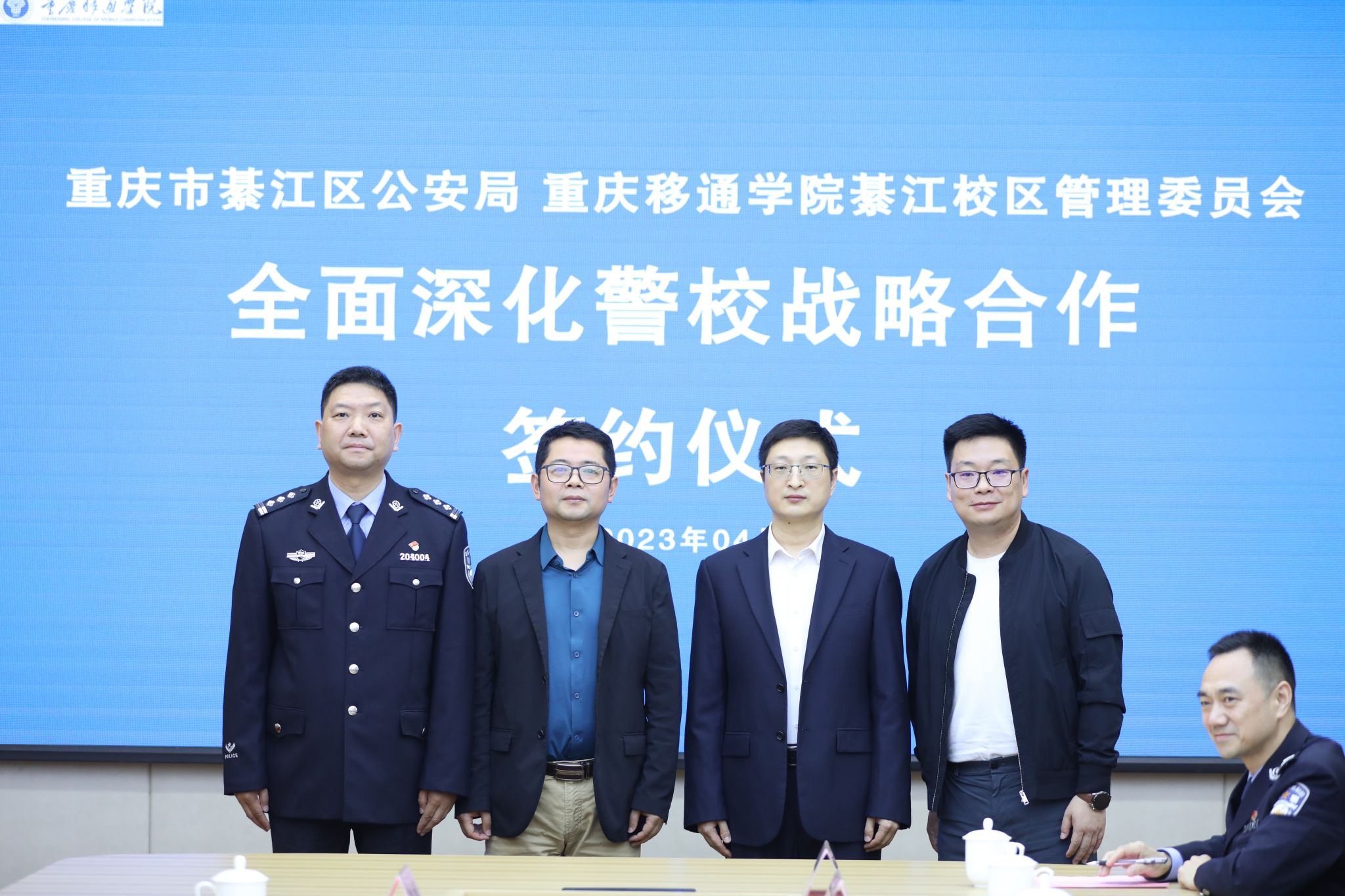 党委副书记陈智、常务副校长王永周代表綦江区公安局和重庆移通学院签订警校战略合作框架协议。