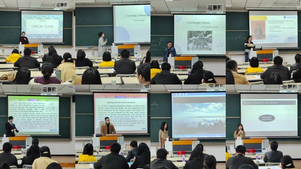 下午4点10分时,组长朱陶老师宣布2023年綦江校区外语组教学比赛正式开始。8位参赛教师准备充分,分别在比赛过程中表现出了不俗的实力。未参赛的教师在观看比赛过程中,也纷纷在笔记本上记录下了自己的观赛感悟和参赛教师的优缺点。下午6点左右,教学比赛结束,吴世银院长、罗琳副院长、张旭宁主任等老师为获奖教师颁发奖状和奖品。