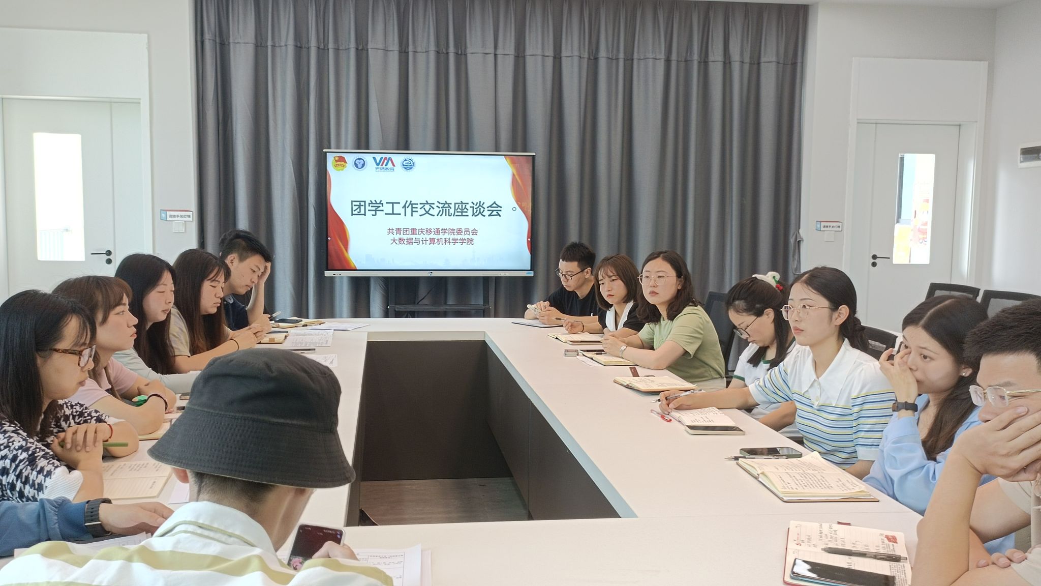 为加强校团委与各二级学院之间交流与合作,促进校团委与学院在团学工作、完满教育工作中统一思想、共同发力,自5月17日起,校团委陆续走进大数据与计算机科学学院、通信与信息工程学院、淬炼·商学院、数字经济与信息管理学院、大健康管理学院,与各二级学院开展团学工作交流座谈会。校团委全体老师,学院团总支书记、学工办主任、学院完满教育各版块负责老师共同参与会议。