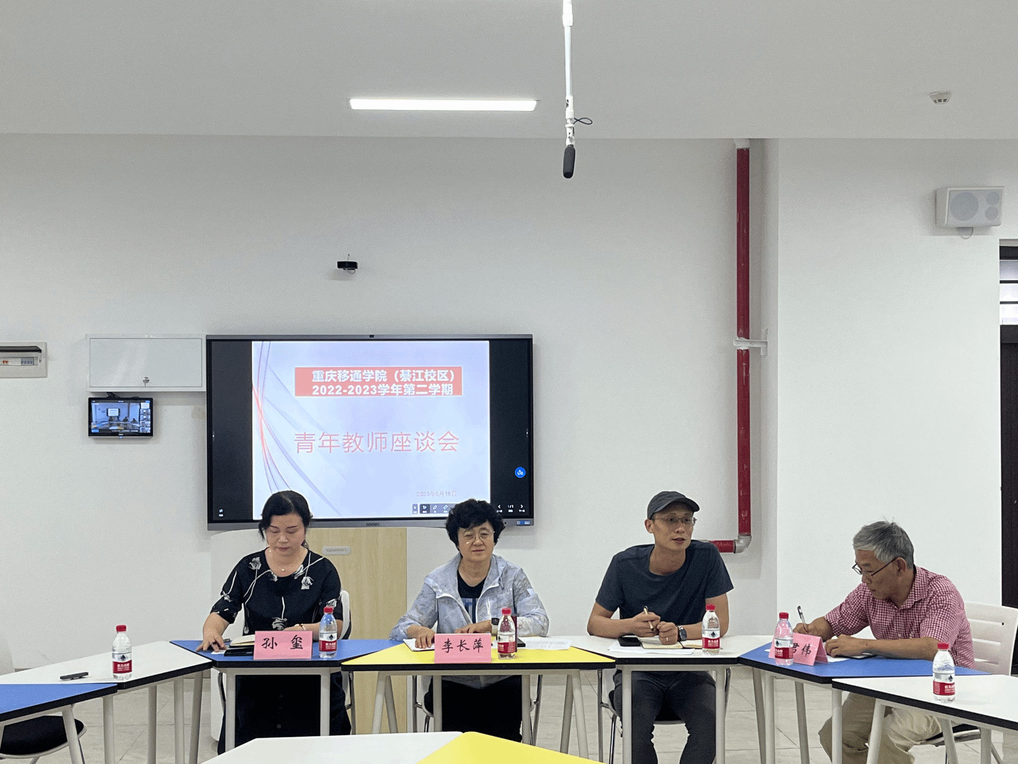 6月16日上午,集团专业教育委员会主任、教学总顾问李长萍教授在綦江校区S1105智慧教室与青年教师代表(95后教师及入职3-5年教师)开展专题座谈会,会议由钟波副处长主持。参与此次座谈会的还有副校长孙玺教授、教学督导与质量评价中心葛君伟教授。