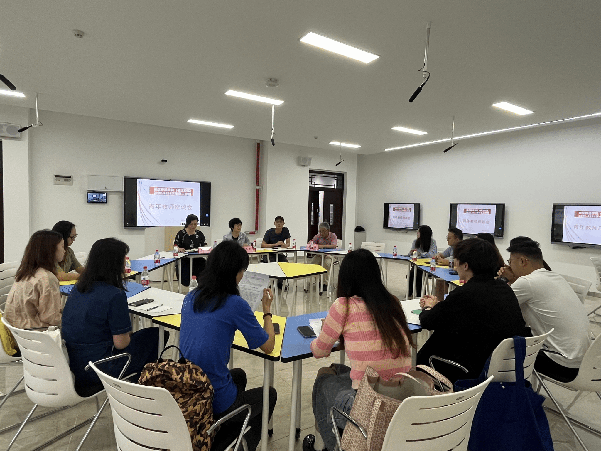 在青年教师座谈会上,各单位教师代表就课堂教学能力培养与提升培训需求、课堂教学管理、学生管理以及教学活动各环节的困惑等方面进行积极发言,提出了当前阶段的一系列问题与困难。