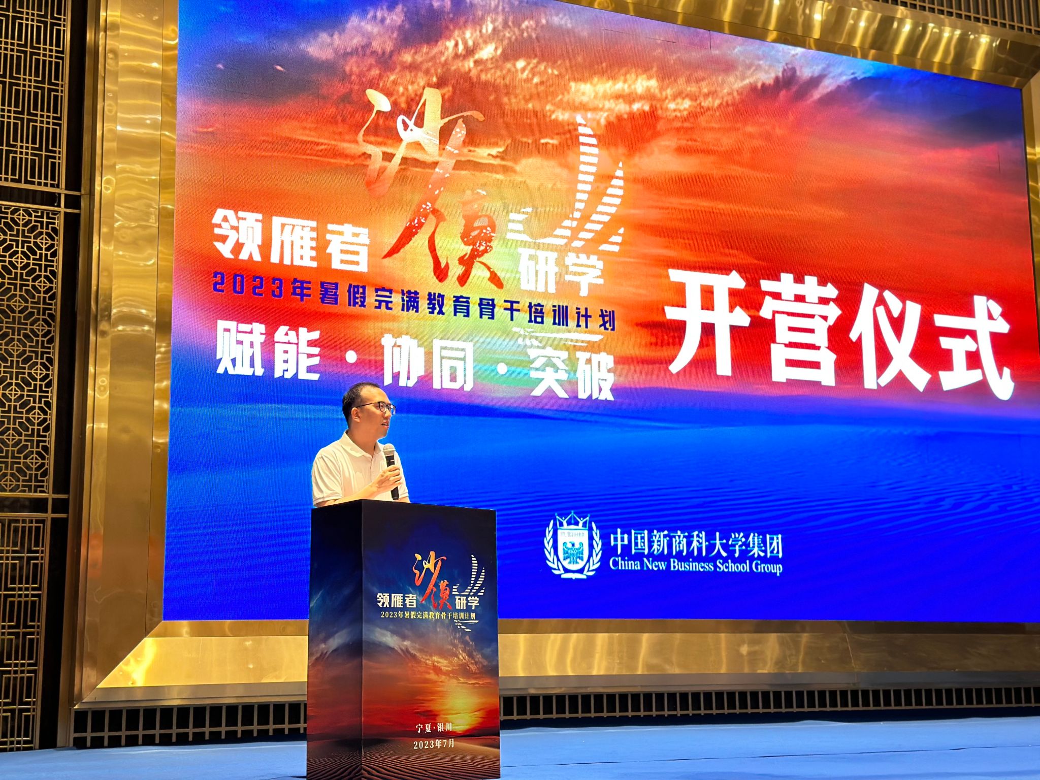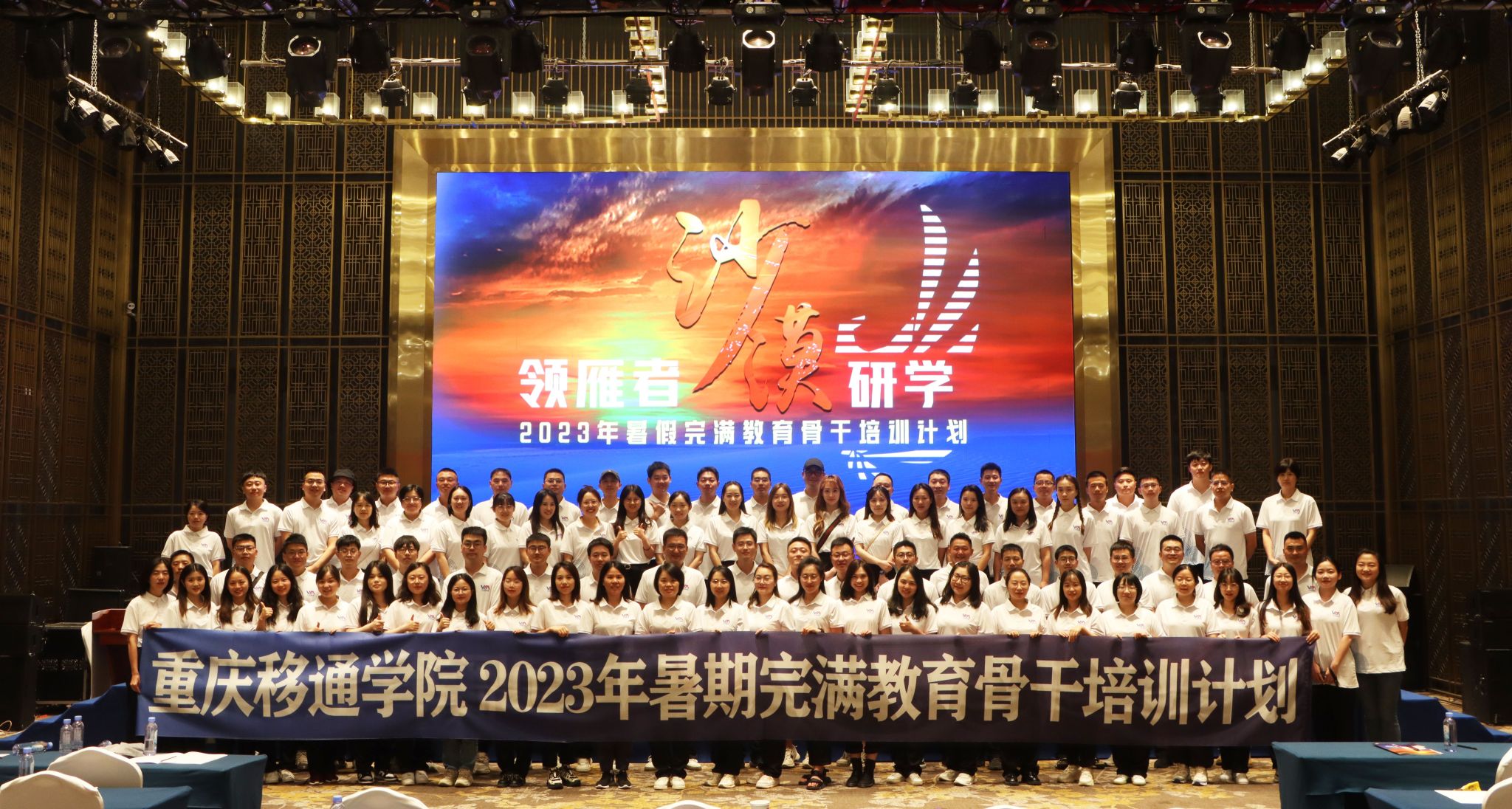 为进一步强化我校完满教育骨干队伍工作能力,深入探究当前完满教育工作关键问题,共谋完满教育工作的极致化发展,7月11-16日,我校完满教育八十余名骨干老师齐聚宁夏银川,开展为期一周的“领雁者·沙漠研学——2023年暑期完满教育骨干培训计划”,本次培训以“赋能·协同·突破”为主题,涵盖专题报告、分组讨论、营地淬炼、参访研学等多个环节,参训老师全情投入,共话完满教育长足发展。