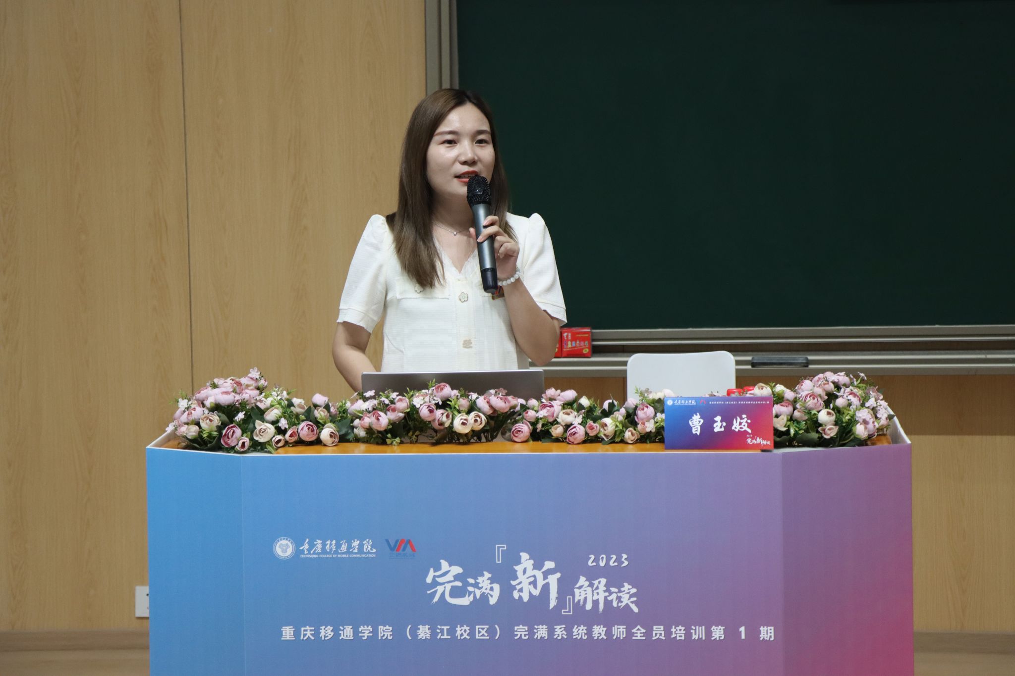 书院是传统教育阵地赋予现代教育内涵的创新育人机制,是学校全员、全方位、全过程、全天候育人的思想政治教育新举措,此次培训的第二讲“书院制育人理念解读”由书院部副部长曹玉姣主讲。解读过程中,曹部长结合自身发展经历,从书院概况、书院角色以及书院举措等方面进行详细讲解,全面输出书院多元色彩空间、多元导师团队、多元项目实况等内容,也为全体完满教师明晰了书院内核与未来发展。通过曹部长的耐心讲解,希望完满教师队伍能够聚合力、燃新态,扎实推进我校“四位一体双院制”人才培养模式育人实效,构建育人效果“1+1>2”的学院与书院“双院+”学生管理新模式,为每位移通学子做好领路人与守望者。