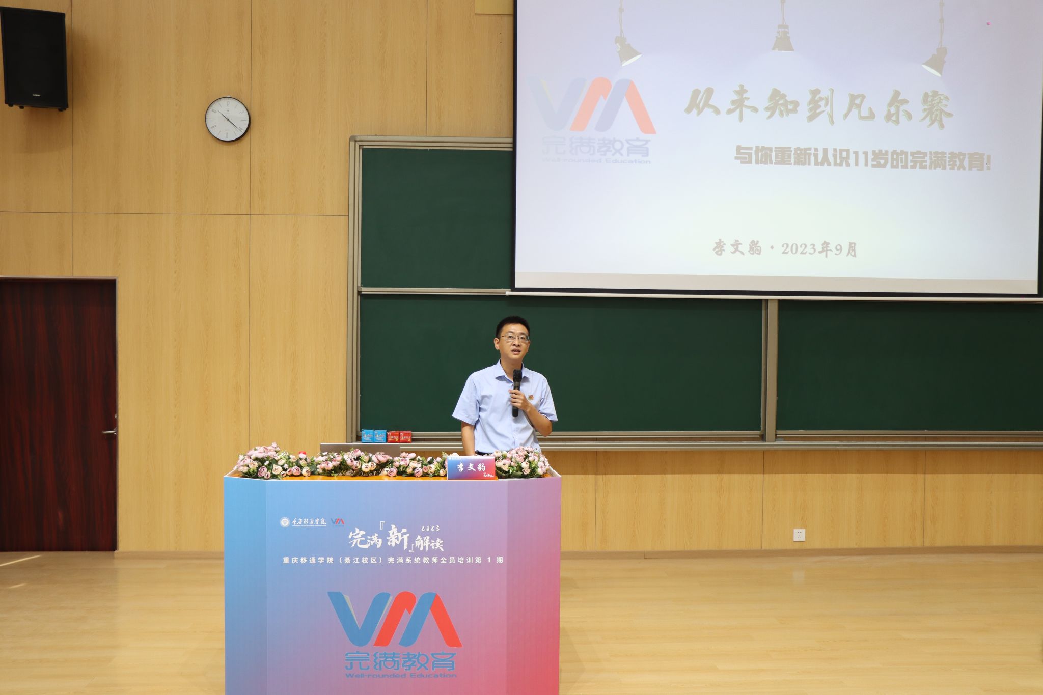 为进一步强化完满教育系统教师的专业性,扎实完满教育理念、体系机制、方法举措等方面的认知与理解,切实帮助团队成员快速适应新环境、明确自我发展的定位,共谋完满教育工作新突破和新发展,9月11日,重庆移通学院(綦江校区)完满系统教师全员培训第1期于玉棠书院阶梯教室正式启动。此次培训为期一周,以“完满教育新解读”为主题,涵盖专题讲座、心理团辅、营地训练、主题研讨、总结酒会等多个环节。同时邀请分管校领导、各职能部门负责人以及完满教育资深教师作为完满主讲人、观察员,为綦江校区完满系统全体教师全情指引,蓄力完满教育工作新目标与新成效。