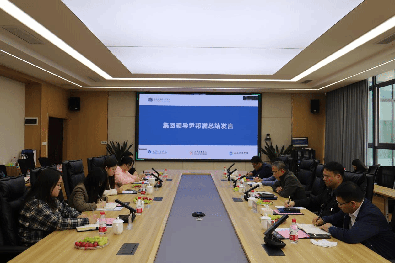 会议最后,集团董事尹邦满进行总结发言并提出四点工作指示。一是三校要积极探索校园全媒体平台融合,不仅要将校级层面的全媒体平台融合起来,还要将二级学院的平台也融合起来。二是三校要更新工作制度,完善制度建设空白点,实现制度先行,要根据校情分别攻克差异难点,最后统一共享一个制度,要多交流合作,保持齐头并进的工作状态。三是要提高品宣队伍的专业水平,三校应积极探索提升队伍专业化水平的方法,以高水平带来高效率,高效率带动高质量。四是要以学生、老师为中心,讲好老师与学生的故事,要站在学生、家长、老师以及社会的关注点,精心策划,认真挖掘。