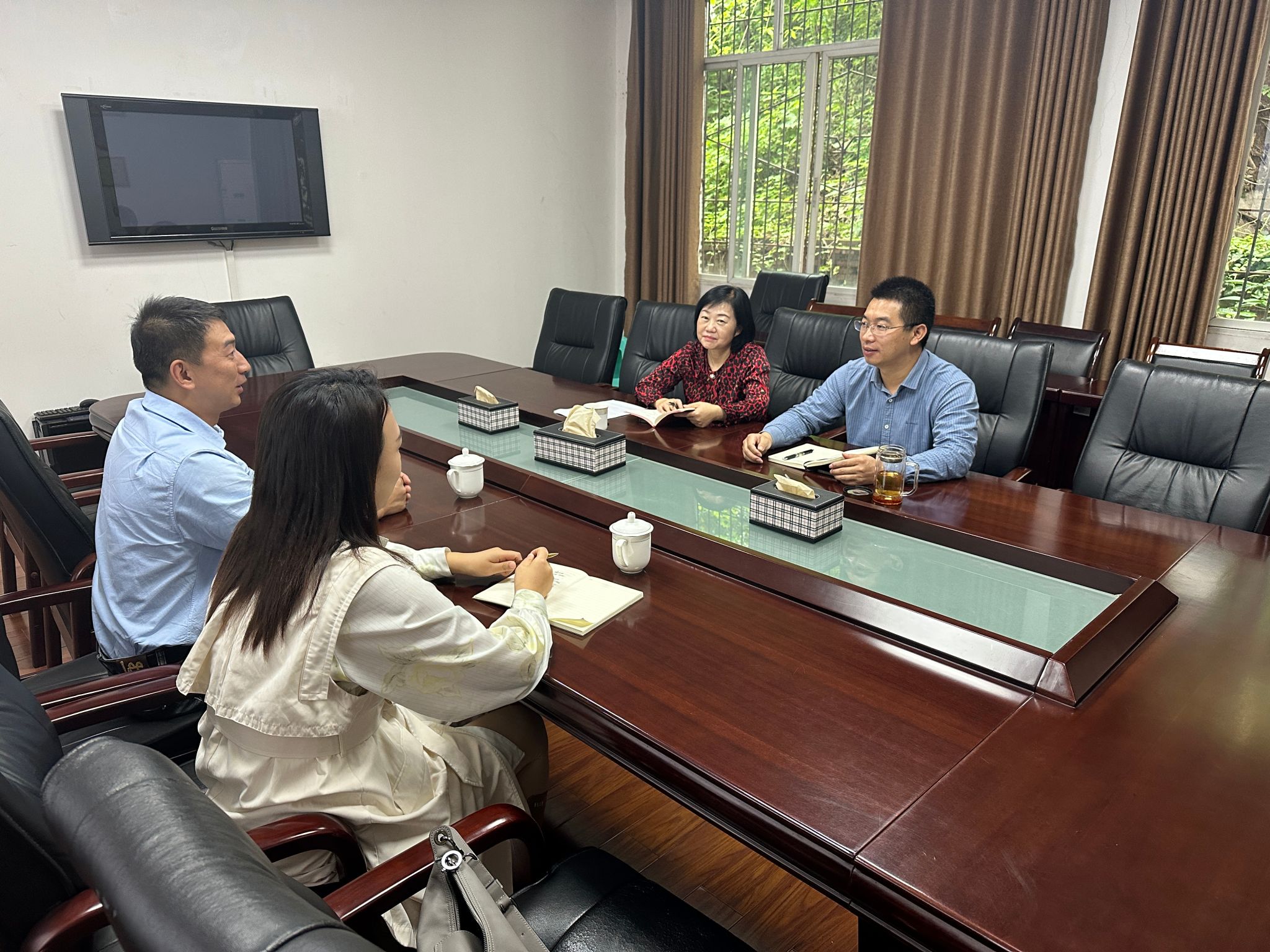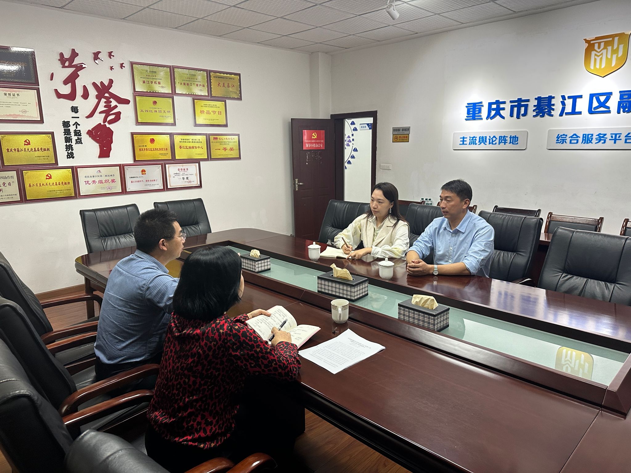 为进一步深化产教融合,实现校企结合育人,10月12日上午,新闻采写产业学院院长方刚、指导教师郝树静来到綦江区融媒体中心,与綦江区融媒体中心副主任马小玲、覃宁波对校企合作展开了深入交流。