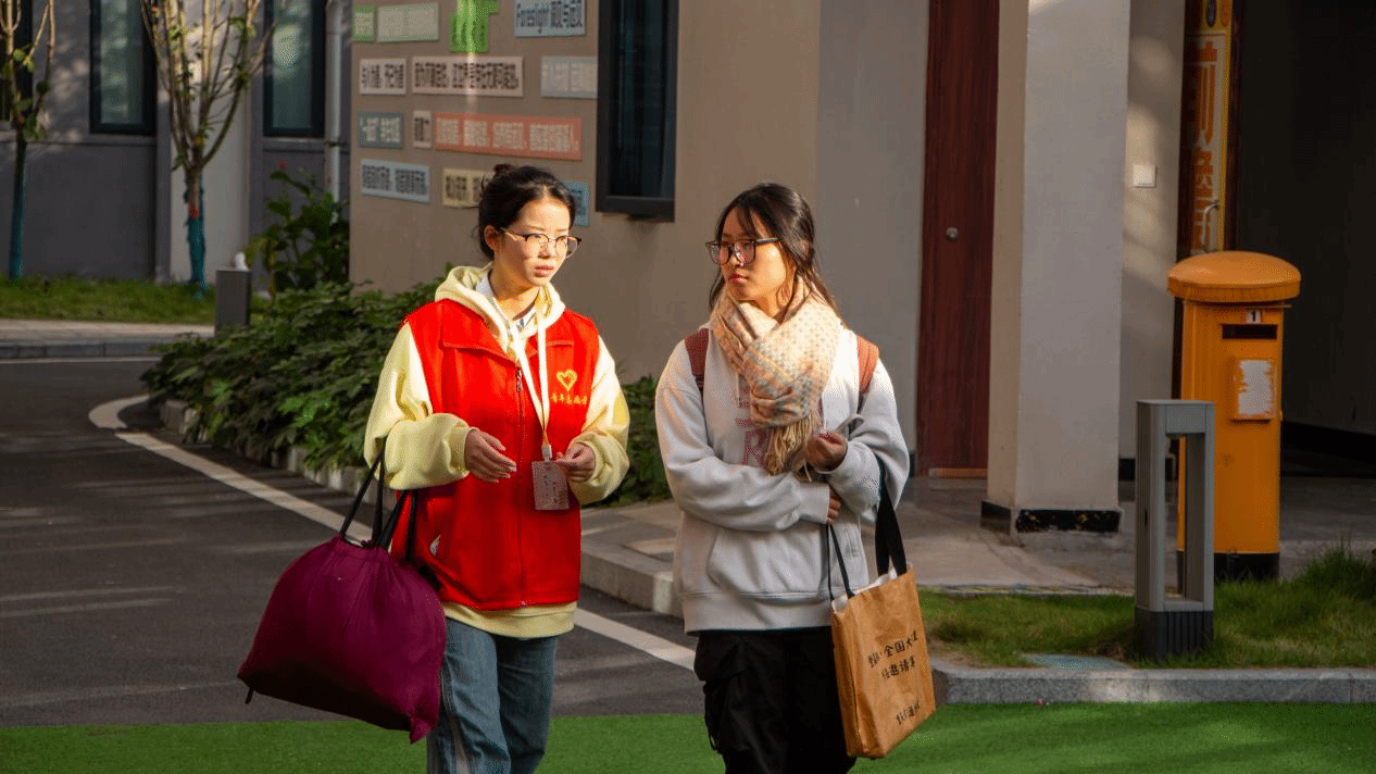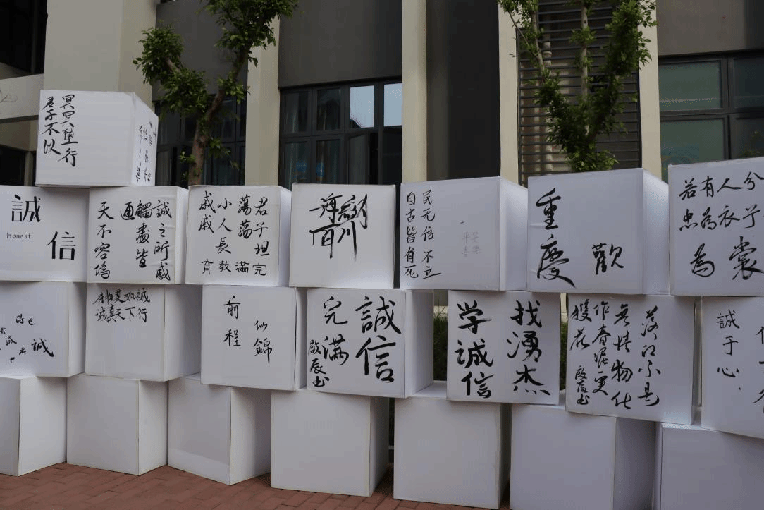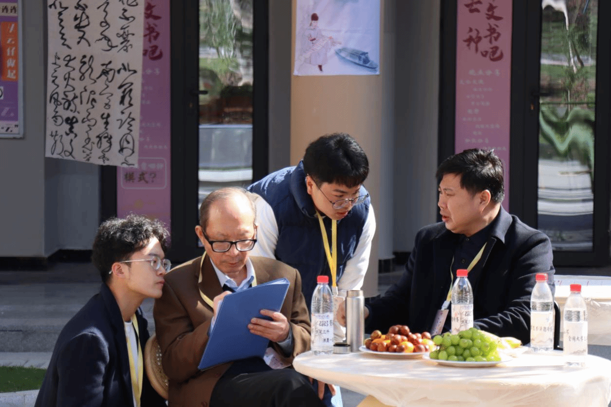 比赛前一天学校就已经安排了志愿者与我对接,十分耐心的回复,第二天一早我到达重庆移通学院綦江校区,志愿者们早已经在哪里等着我们,随着赛场工作人员的组织,带领我们去报道去领参赛物品,服务无微不至,门口赫然立着一个大展排“登瀛杯”全国大学生书法比赛决赛,学校里也到处布置得古色古香,到处都是氛围营造,书法活动氛围十分热烈,选手们都一致称赞,感受到了重庆移通学院同学和老师们的热情似火,每一项活动都井然有序,志愿者们也都是全程陪同,给我们参赛选手宾至如归的感觉,在这特别感谢引领我的两名志愿者,是她们从头到尾带我参观学校书院,给我介绍,也为我第二幅作品原创作品打下基层。