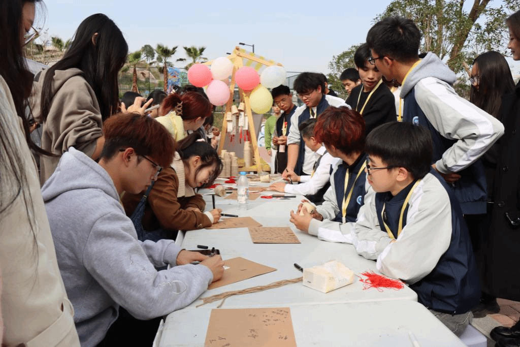 7个外围活动,书法名家讲座、“共研一池墨香”交流会、书法风铃制作、千人一副字……大家在不同的活动现场之间穿梭、体验、欢笑,不亦乐乎,在感受特色活动的同时也将比赛的压力尽情释放。除选手外,本次外围活动共计吸引1000余名书法爱好者参与,师生共享,一同感受书法的魅力。
