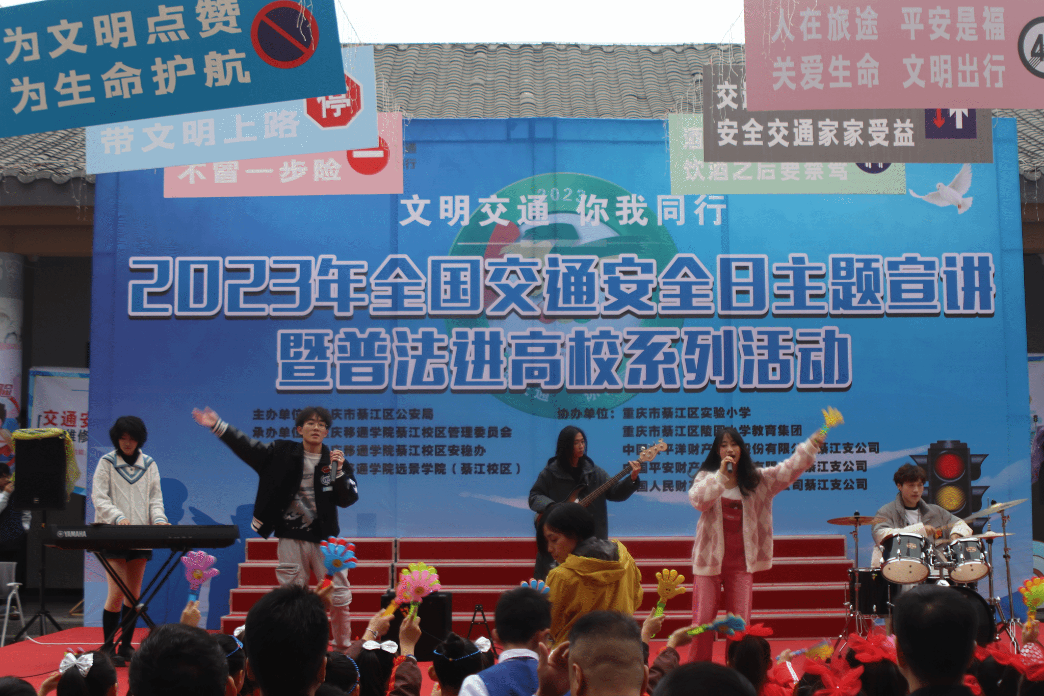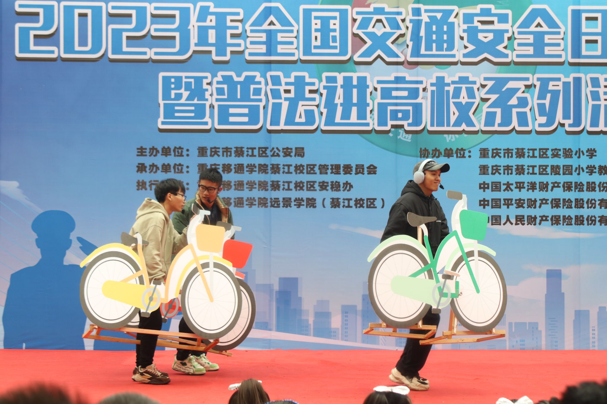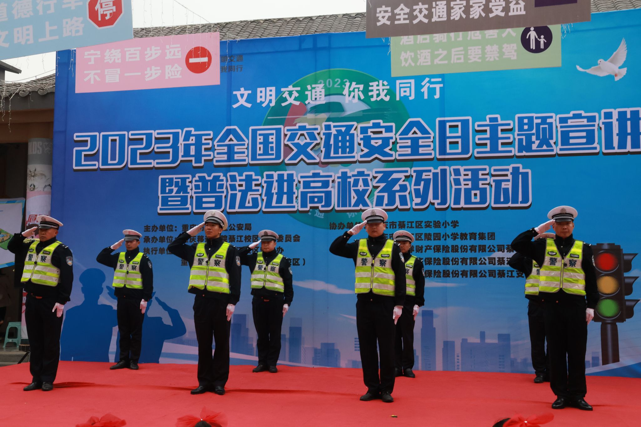 在第十二个“全国交通安全日”到来之际,为加强道路交通安全教育,提高道路交通安全意识,引导学生养成遵守交通规则、文明出行的良好习惯,积极营造全社会共同关注交通安全的浓厚氛围。12月1日,重庆移通学院(綦江校区)安稳办、远景学院联合重庆市綦江区公安局交巡警支队开展“文明交通·你我同行”2023年全国交通安全日主题宣讲暨普法进高校系列活动在古剑书院中庭如期开展,区交通局、团区委、区教委、区委网信办、各中小学等61家单位及企业代表应邀到场。