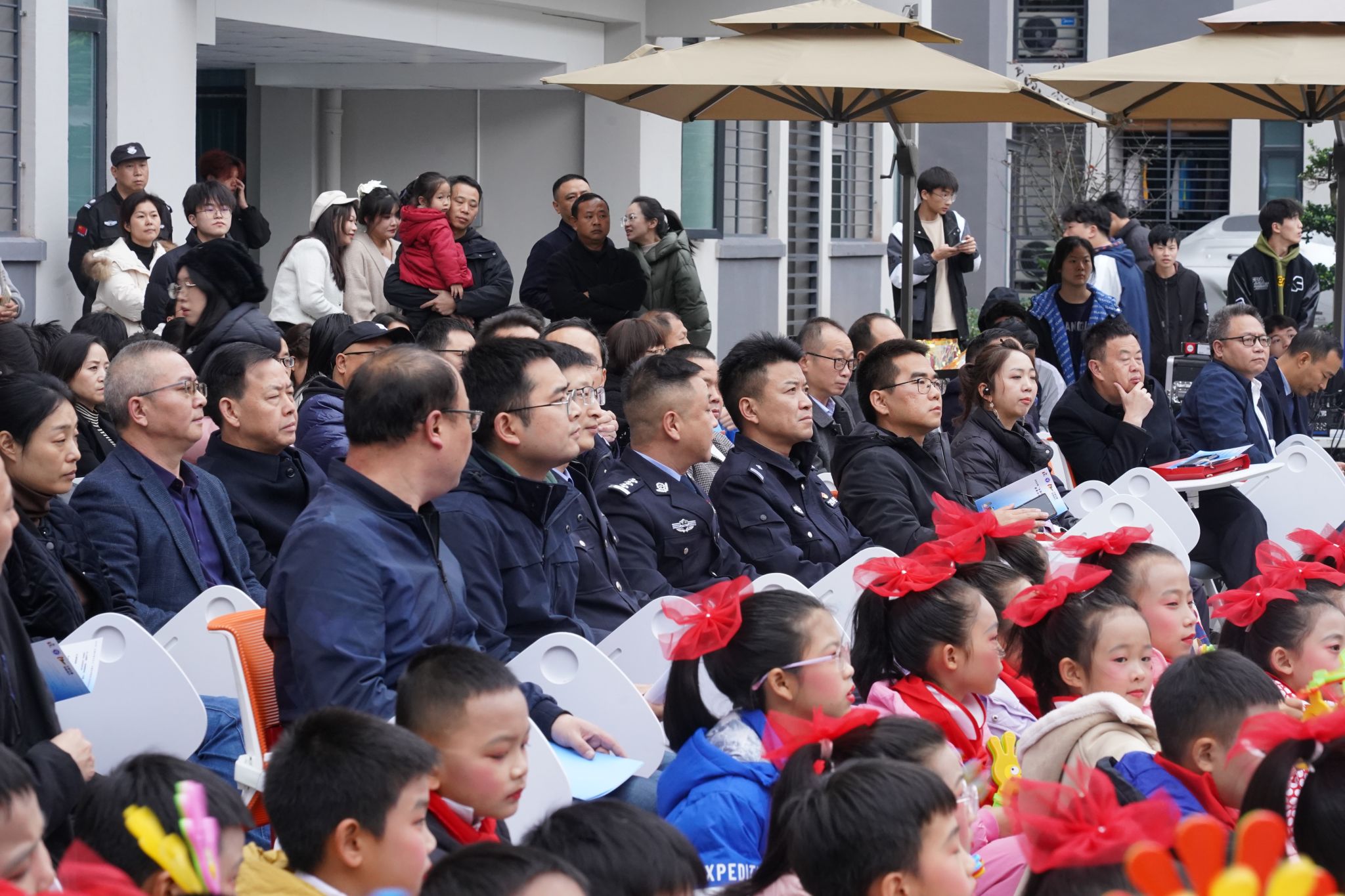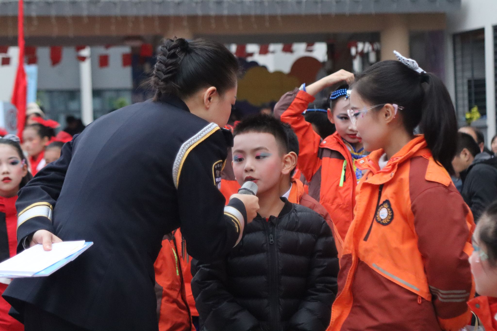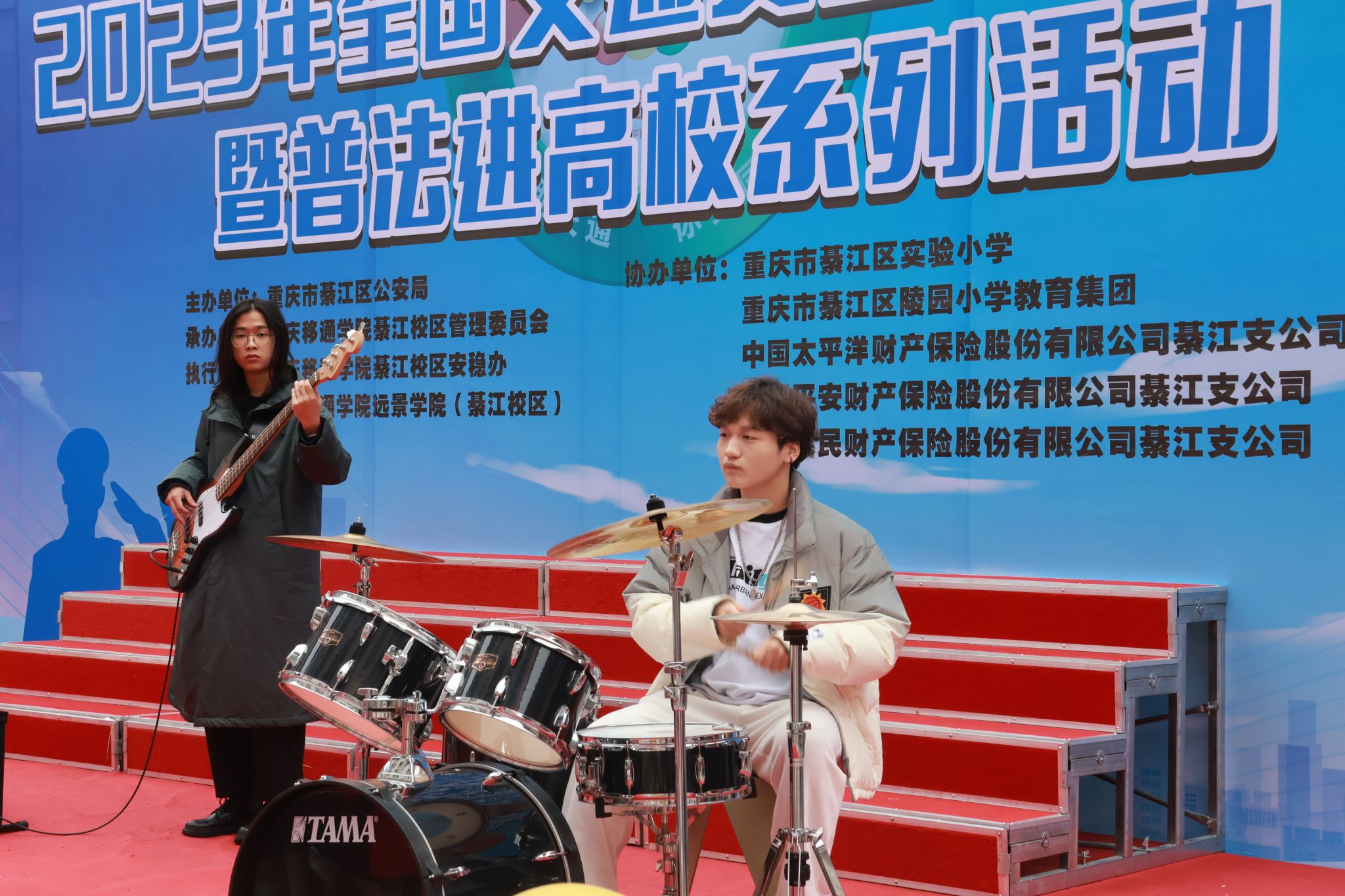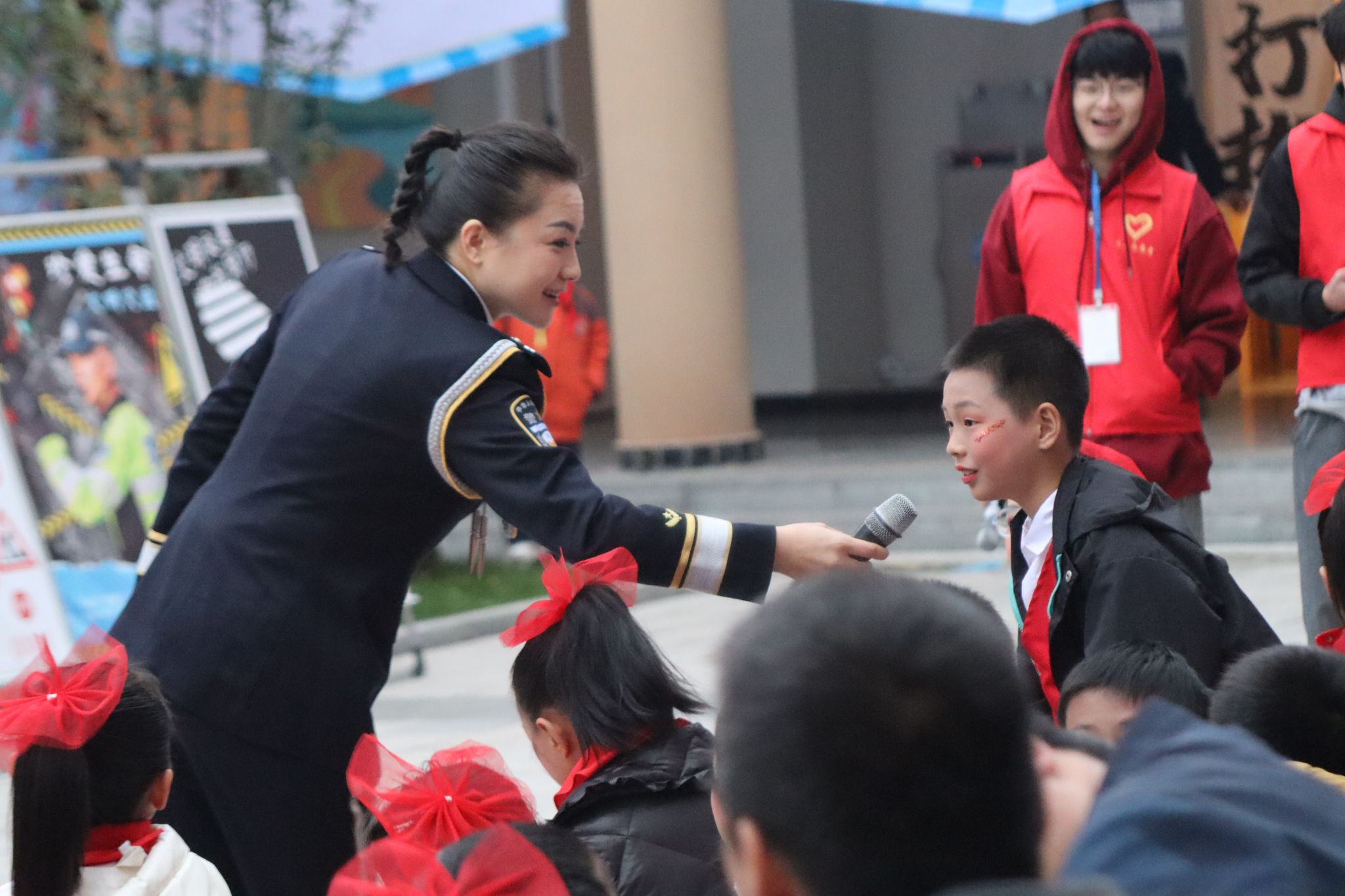 活动正式开始,由远景学院学生原创编排的交通安全短剧《交通安全无小事》率先登场,同学们用诙谐的语言和表演方式向大家传达了交通安全的重要性,并告诫大家无论何时切记不可存有侥幸心理。紧接着,区实验小学学生带来合唱《把未来点亮》《米多多之歌》及歌舞表演《茫茫敕勒川》;区陵园小学学生带来歌舞表演《红领巾心向党》,孩子们童真而动人的歌声给在场师生带来温暖和感动;远景学院学生自制短视频《是谁杀了他》在现场展播,视频通过回溯交通事故发生的起因,郑重告诫大家道路千万条,平安第一条;区公安局民警杜森林演唱歌曲《万疆》《不忘初心》,他以沉厚的歌声和深情的表达,传递出对祖国最真切的祝愿;区实验小学老师杨晓筱带来青春活力的独唱《第一天》《我以渺小爱你》;区公安局交巡警支队以交通手势操表演展现交巡警风采,也让大家对交通手势加深了记忆和了解。