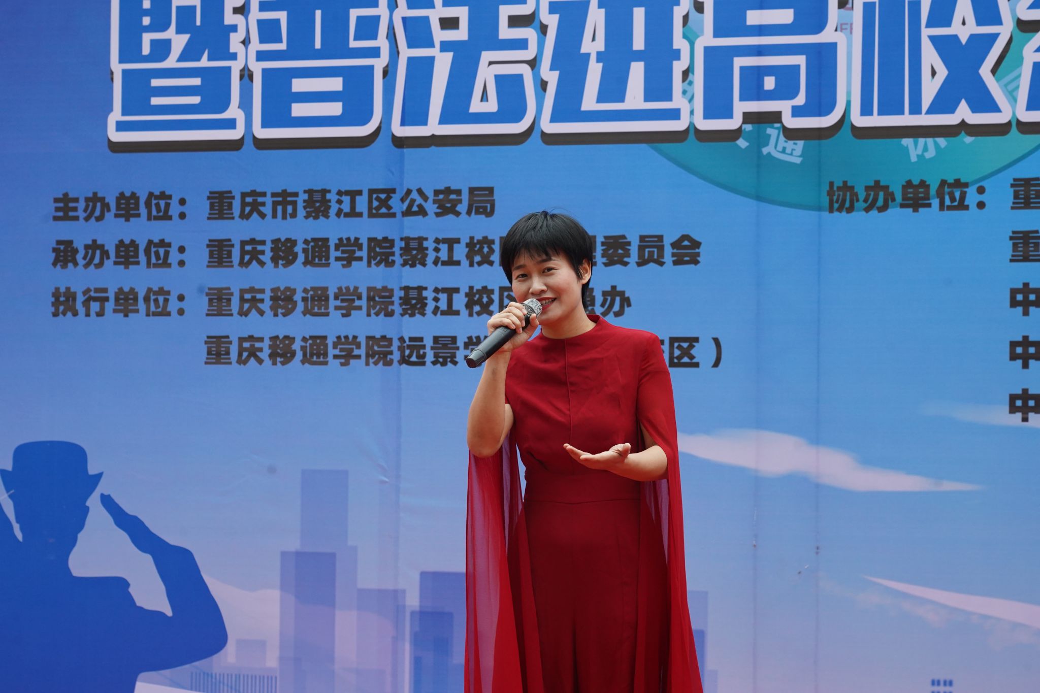 活动伊始,重庆移通学院远景学院梦想家乐队以一首活力满满的交通改编歌曲《听妈妈的话》拉开序幕,活动现场的氛围瞬间引燃。随后,重庆移通学院安稳办领导唐尚静致辞,唐主任提到本次活动聚焦安全主题和文明议题,深刻阐释122“全国交通安全日”在推动现代文明交通理念、普及道路交通安全知识、促进全民交通安全意识、规则意识、法律意识、文明意识提升等方面的重要作用,通过广泛宣传“人人共建、人人共享、你我同行”的理念,带动提升全民特别是校园师生参与文明交通建设的意识行动,推动形成自觉蓬勃的文明交通风尚。学校也将与社会同频共振,持续积极推进校地融合发展,稳步开展普法宣传教育。