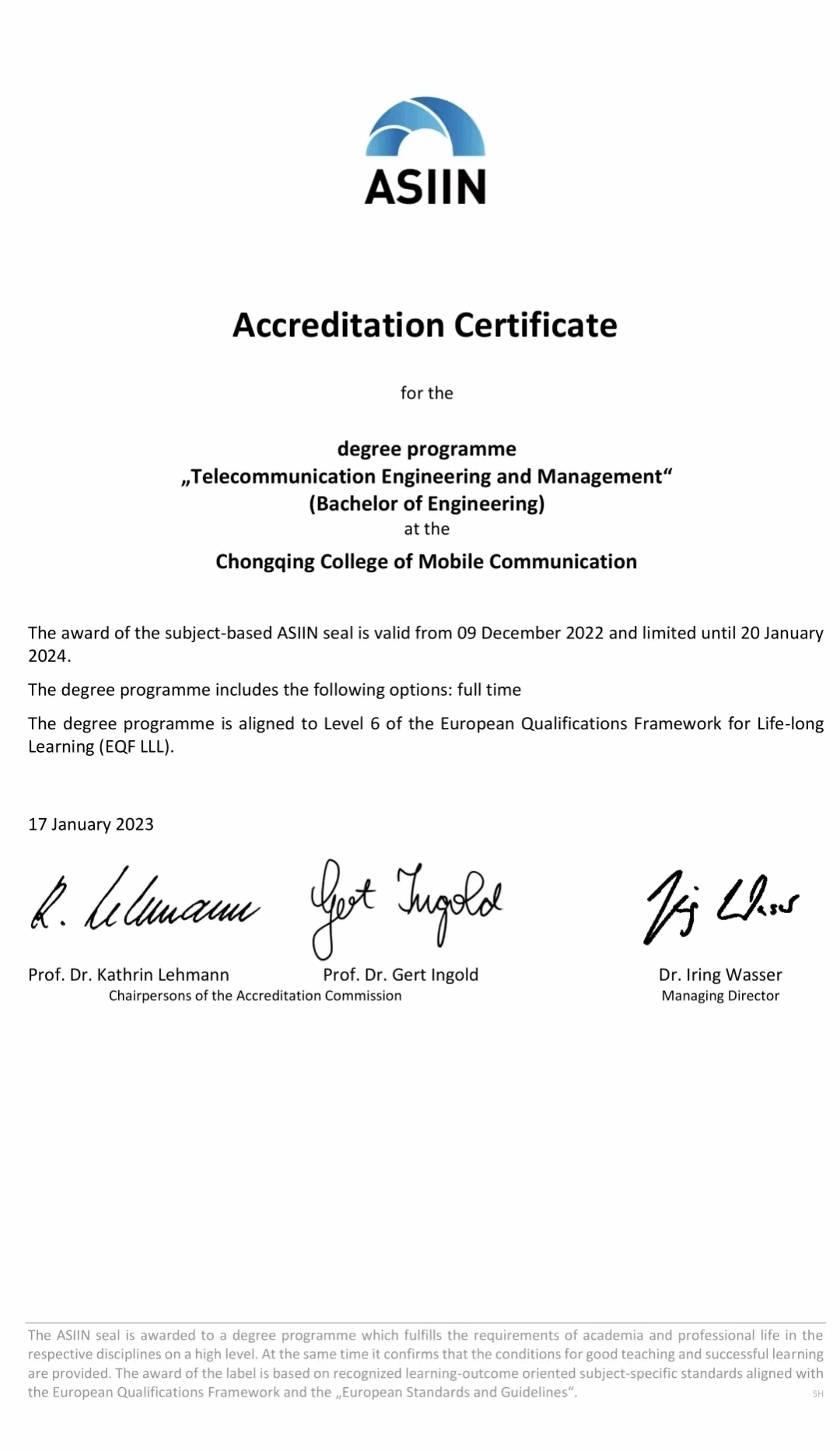 今年2月,学校通信与信息工程学院的“电信工程及管理”“电子信息工程”两个专业通过德国工程教育认证(ASIIN),标志着移通专业建设在标准化、规范化、国际化等方面迈上新台阶。4月,学校翻译、网络与新媒体、智能科学与技术等6个本科专业顺利通过教育部普通高等学校本科专业备案。6月,全国首家政校企共建省部级重点实验室正式落地移通綦江校区。同月,学校与德国埃森经济管理应用技术大学成功签署办学合作协议,这是移通持续推进教育国际化的重要举措,为移通努力实现培养高质量国际化复合型专业人才目标打下更坚实基础。12月,学校《材料力学》《车站信号自动控制》等8门课程获认定为重庆市一流本科课程,标志着移通在课程建设方面取得了重大进展。同月,我校2023年首次招生的电影制作、翻译、健康服务与管理、区块链工程、网络与新媒体、智能科学与技术6个本科专业顺利通过学士学位授权审批,增列为学士学位授权专业。