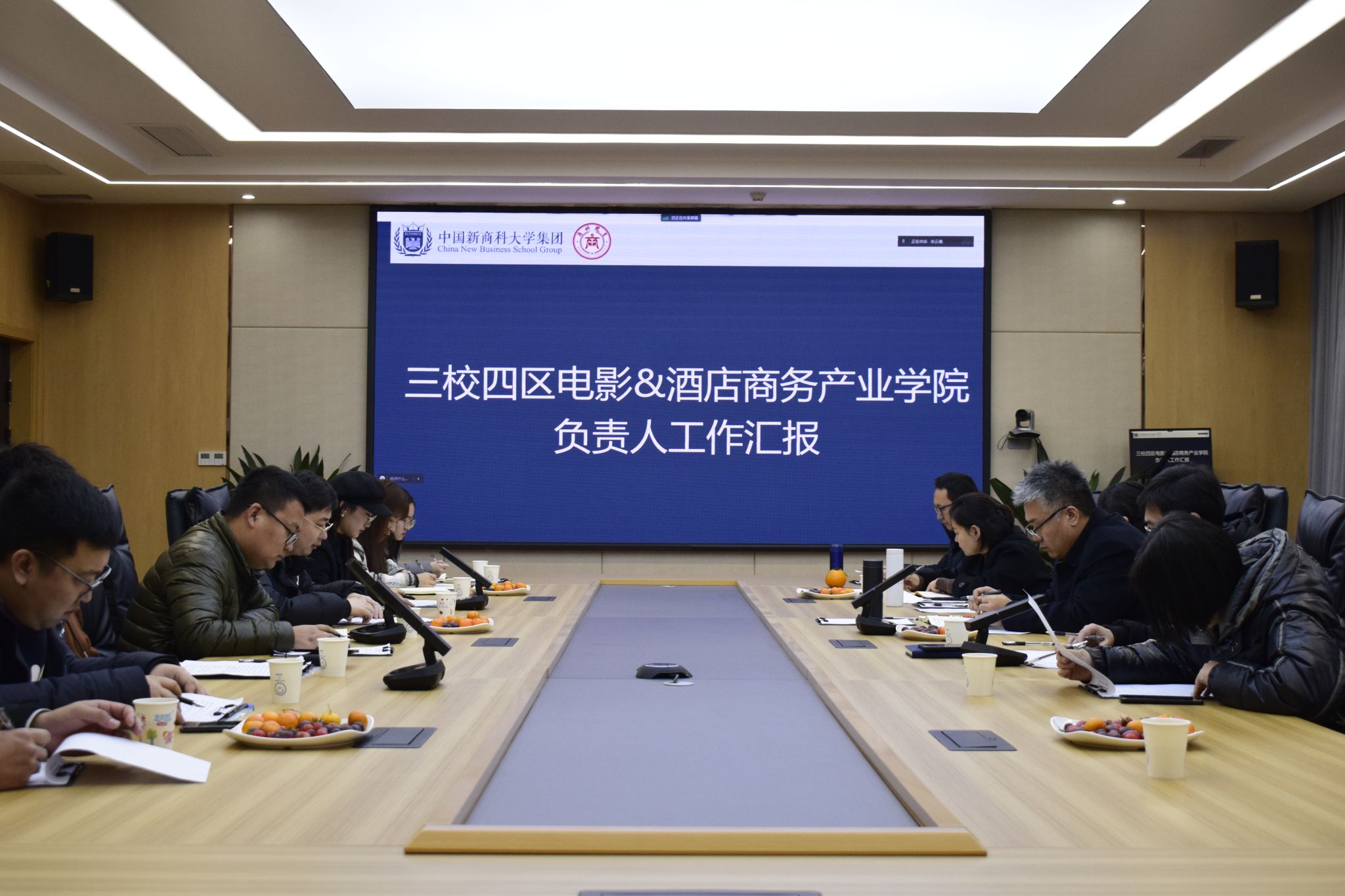 本次会议主要内容是:三校四区电影&酒店商务产业学院负责人工作汇报;各学院根据实际运行的情况,以及出现的相关问题,进行互相交流;总结及提议。