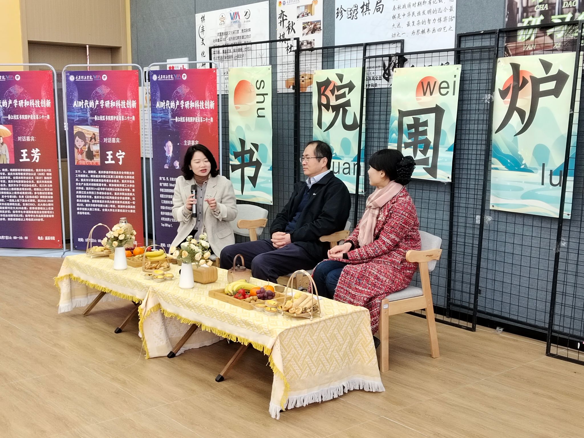 2024年3月7日下午14:00-16:00,重庆移通学院綦江校区瀛溪书院,大赛活动周第二场围炉夜话活动如期举行。本次活动的主题是“AI时代的产学研和科技创新”,特邀东南大学首席教授、广智微芯创始人黄广斌作为主讲嘉宾,与区合成作战支队、情报指挥中心、信息安全学院副院长王宁、戏剧影视学院副院长王芳、以及师生代表60余人,共同展开了一场深入而富有洞见的探讨交流。