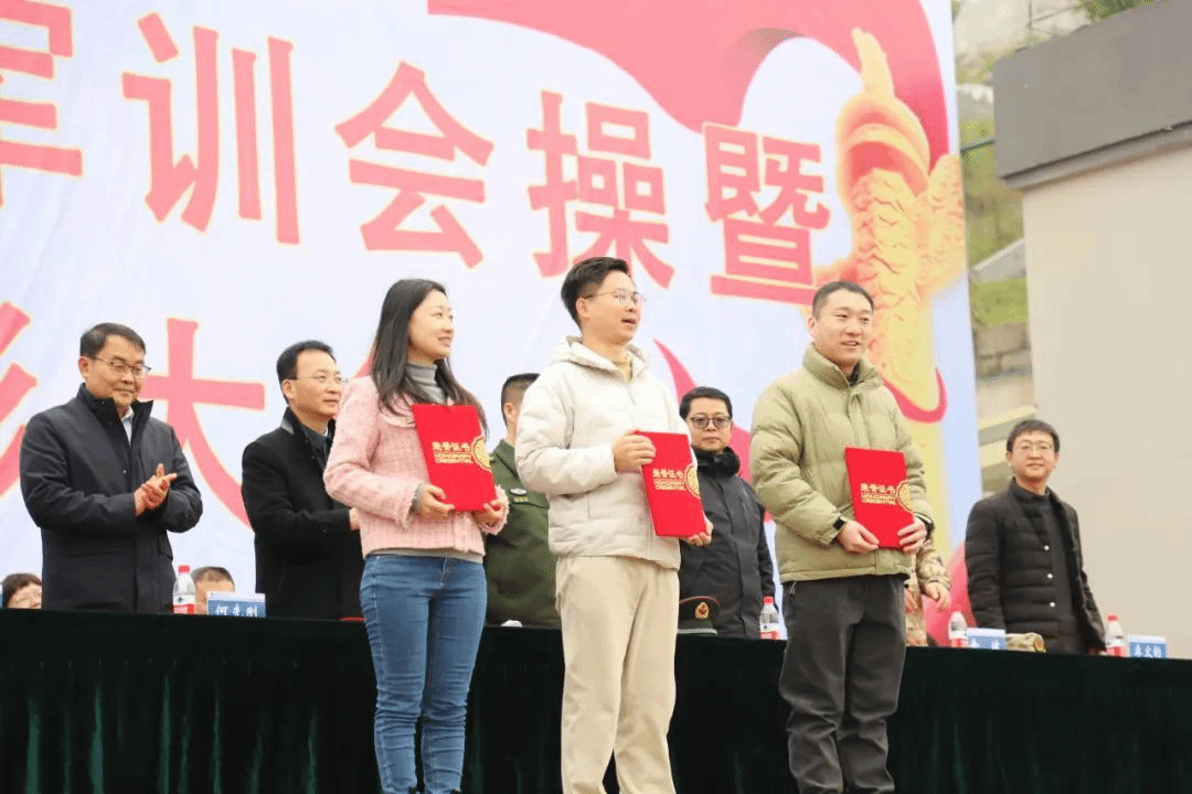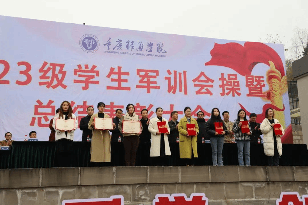 重庆移通学院常务副校长王永周宣读《重庆移通学院关于表彰綦江校区2023级学生军训工作先进集体和先进个人的通报》。表彰宣读结束后,为军训工作先进集体、优秀个人颁奖颁发荣誉证书。